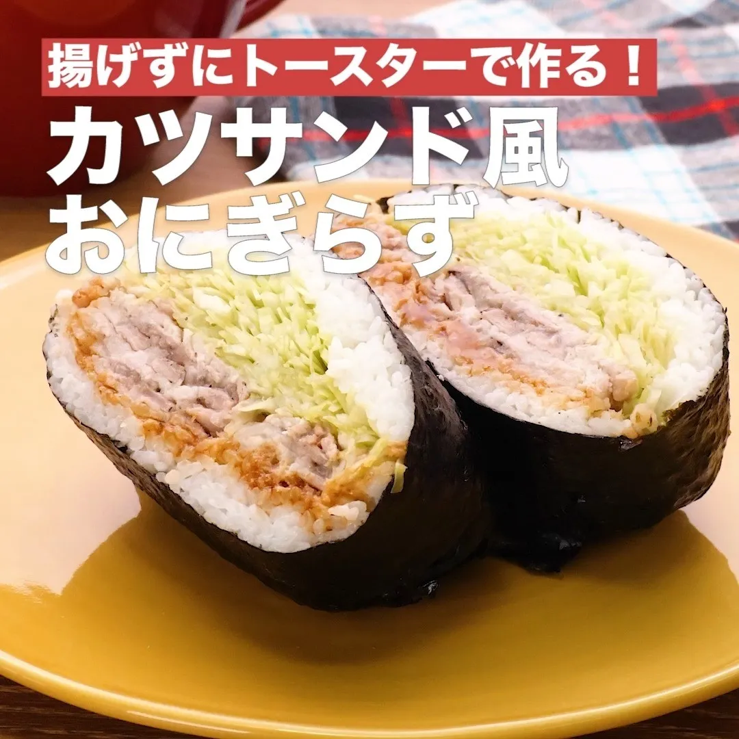④<揚げずにトースターで作る!カツサンド風おにぎらず>
