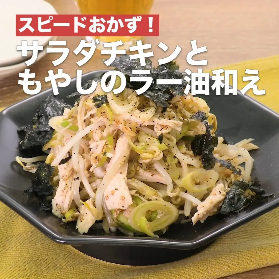 ⑦<スピードおかず!サラダチキンともやしのラー油和え>