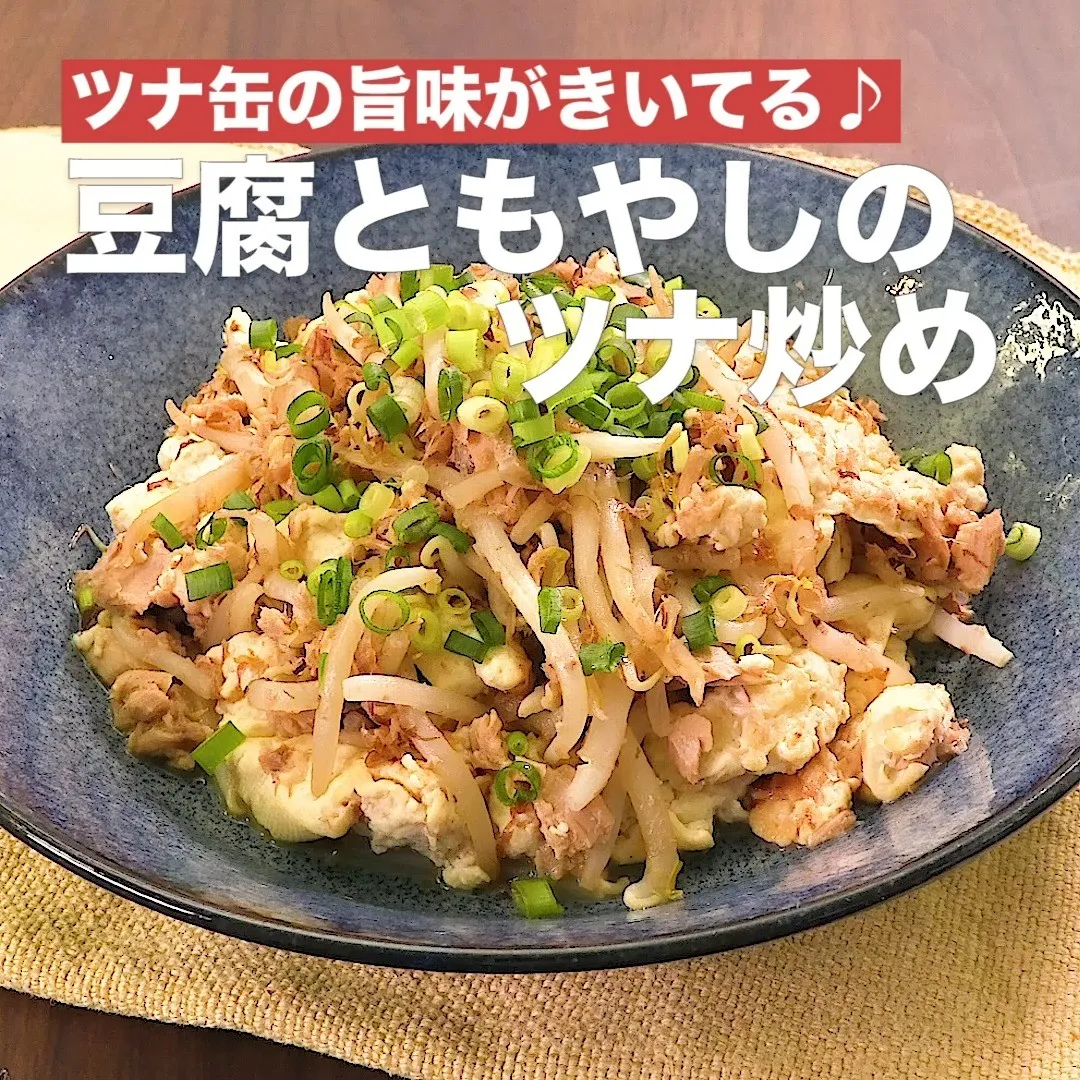 ④<ツナ缶の旨味がきいてる♪豆腐ともやしのツナ炒め>