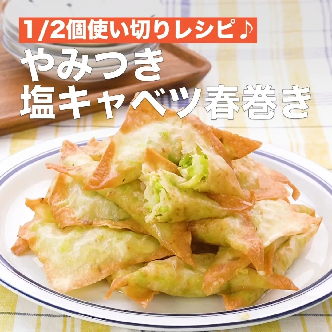 ③<1/2個使い切りレシピ♪やみつき塩キャベツ春巻き>