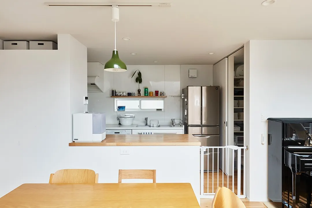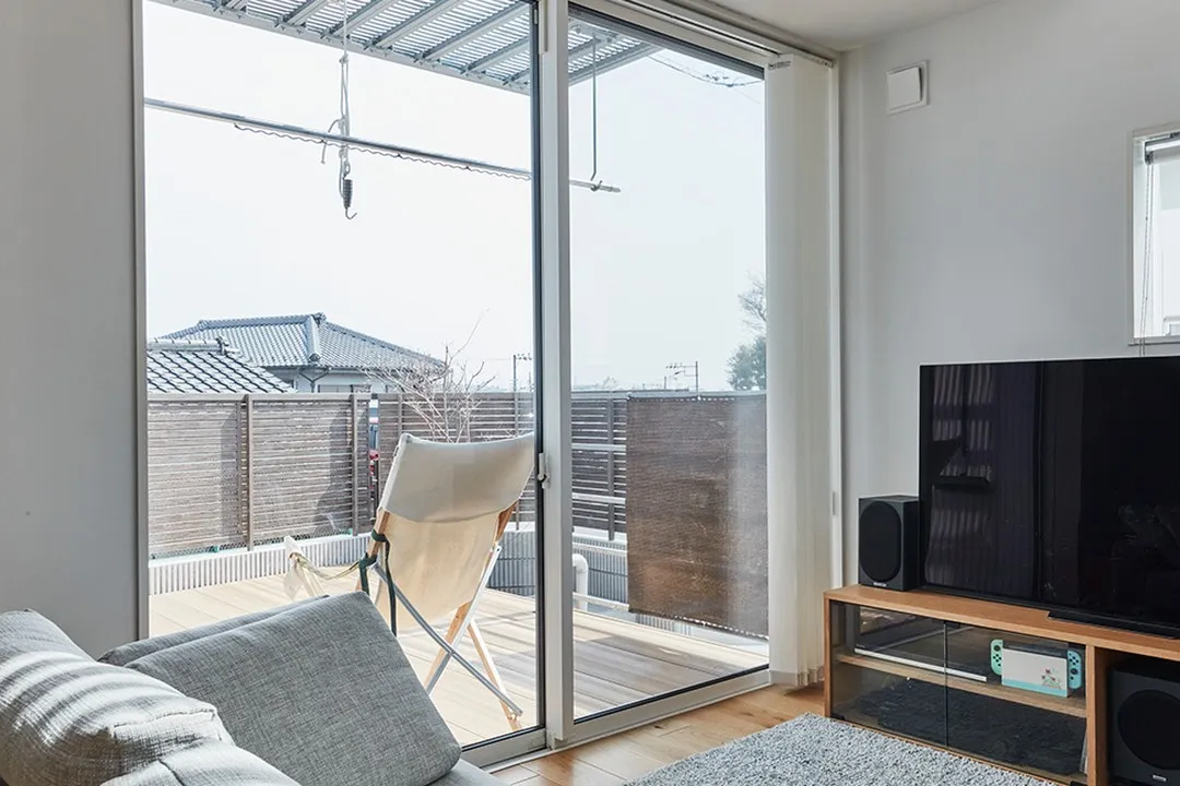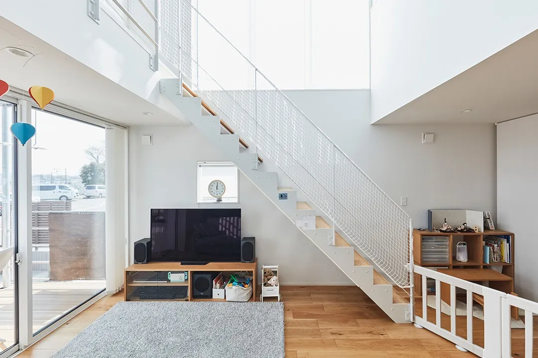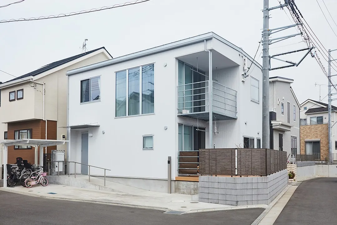 横浜市にある「木の家」H邸は、白い壁が明るく映えるお宅。2面が道に面しているので見晴らしがよく、開放感が楽しめます。ご家族はこの家に住んで2年が経過しました。