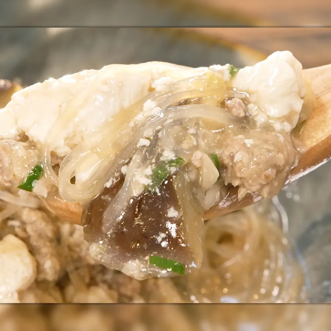 ⑥春雨(40g)豆腐(一丁)を軽く崩しながら入れる