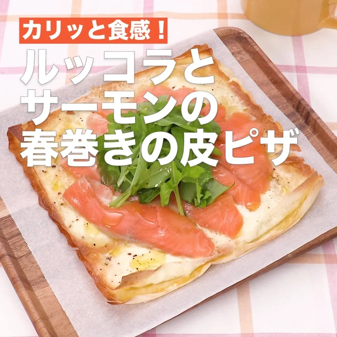 ⑦<カリッと食感!ルッコラとサーモンの春巻きの皮ピザ>