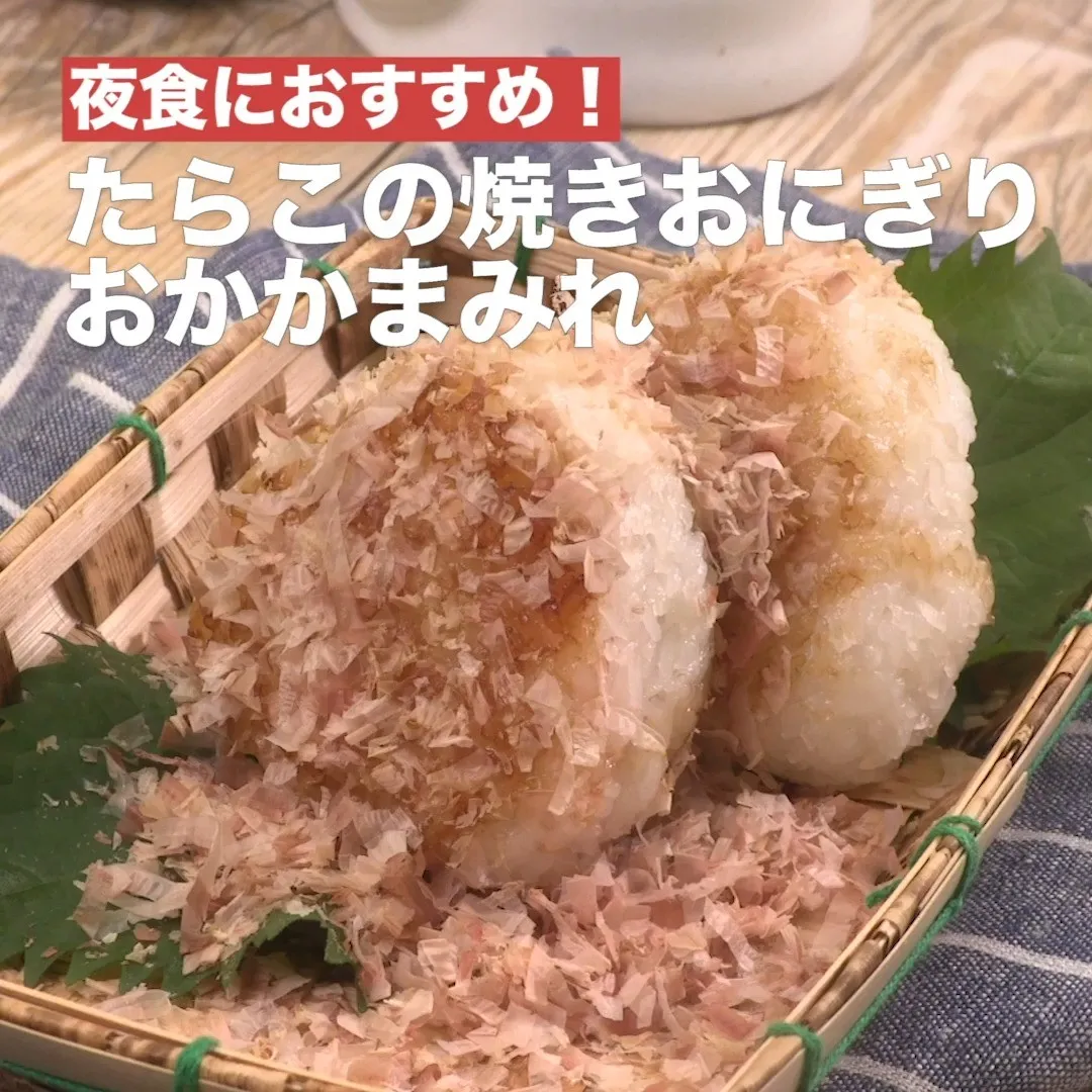 ⑤<夜食におすすめ!たらこの焼きおにぎりおかかまみれ>
