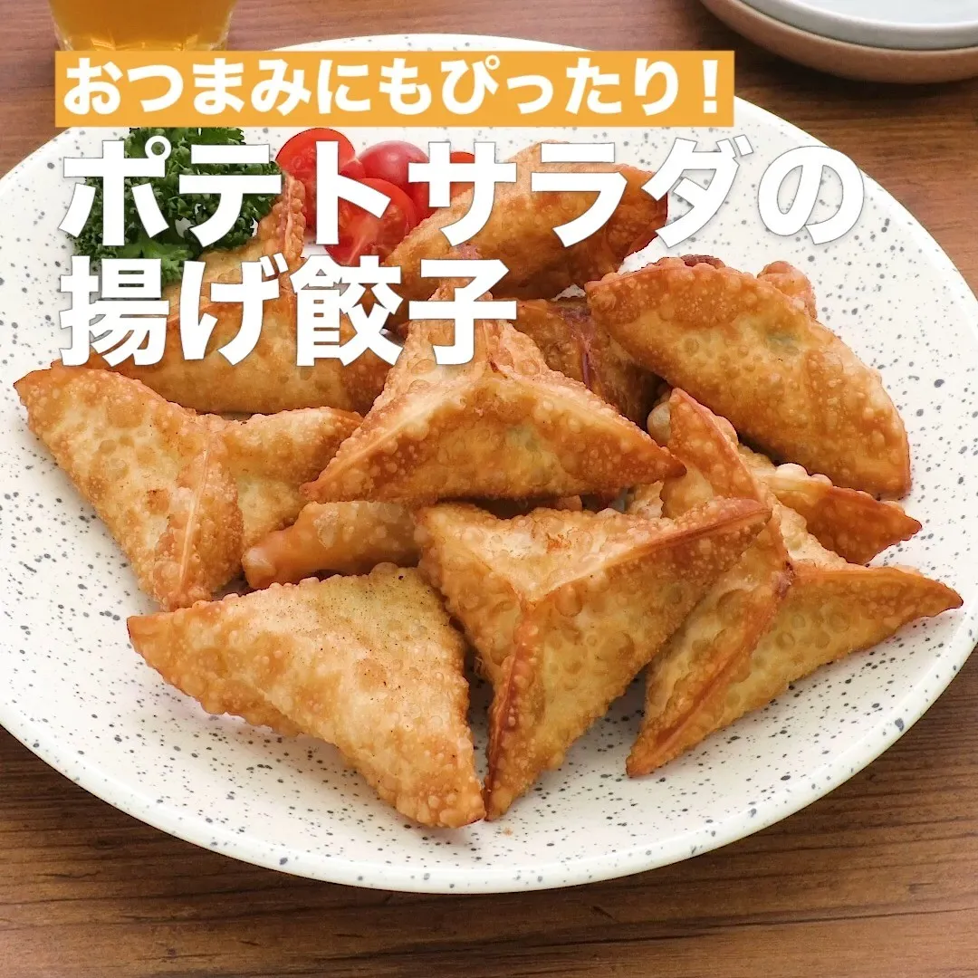 カリッと揚げた餃子の中に、ゴロッと食べ応え抜群なポテトサラダがたっぷり♪包んで揚げるだけなので、少ない手順で簡単にお作り頂ける一品です。
