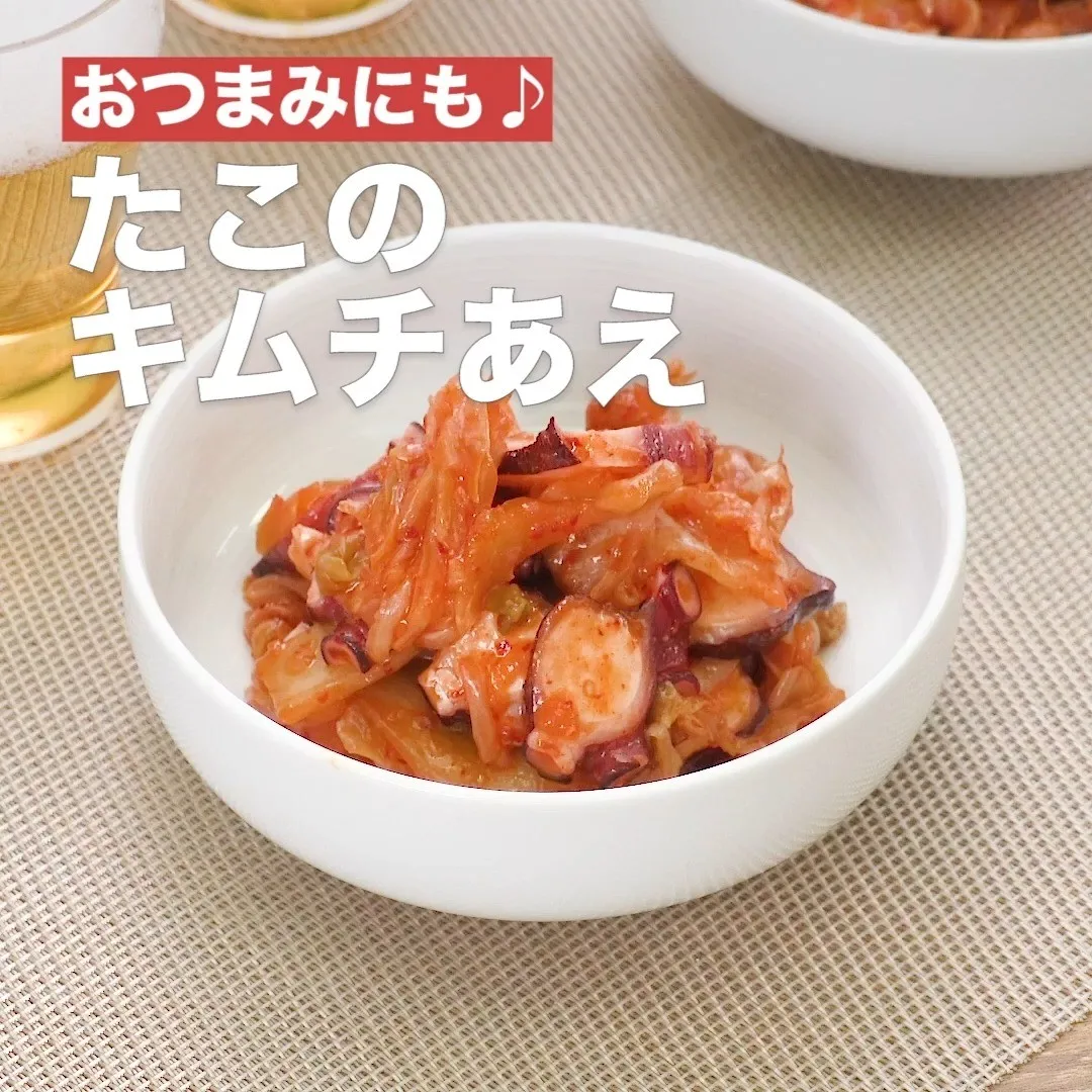 切ってあえるだけで簡単立派な副菜の出来上がり♪たこの食感とキムチのシャキシャキが相性抜群です!
