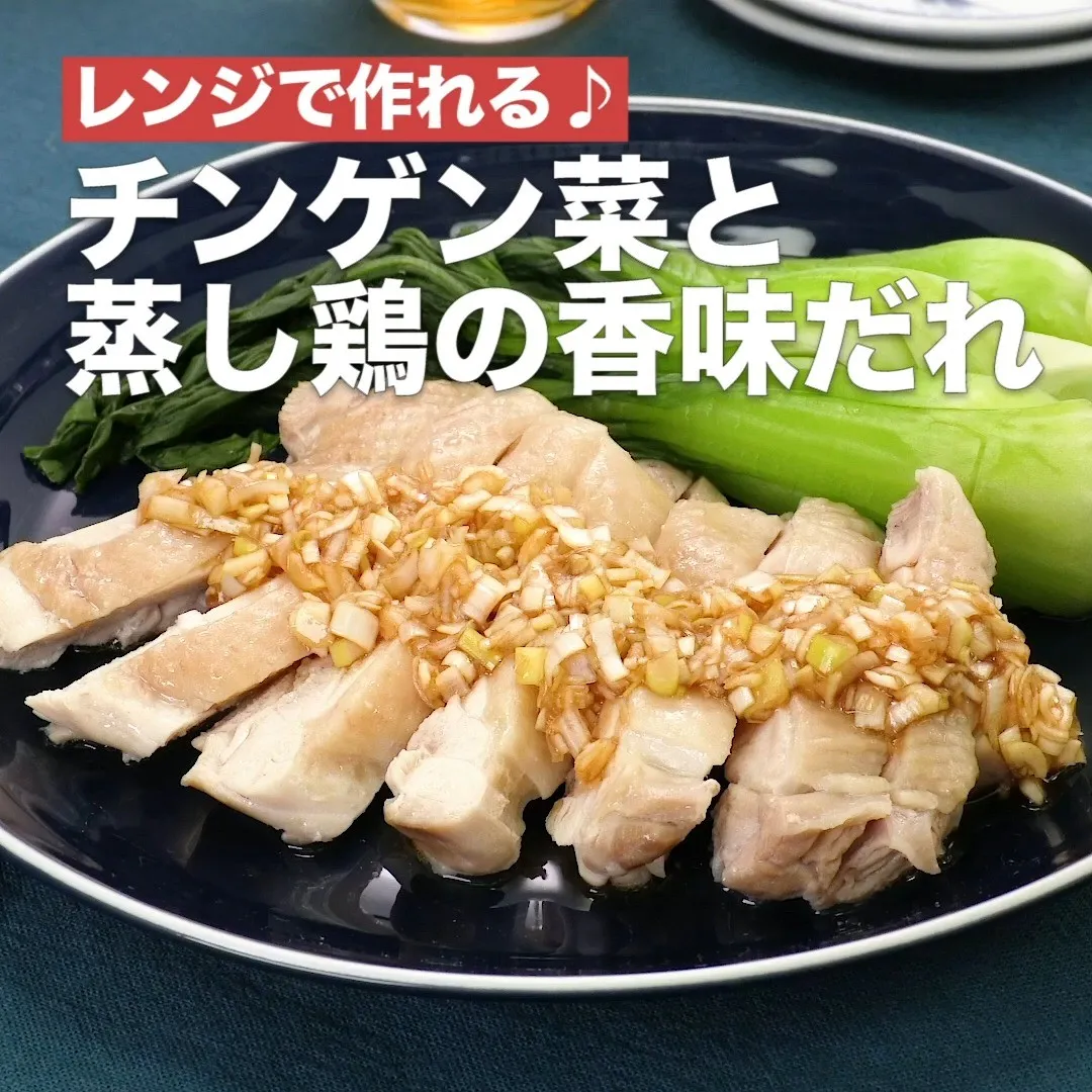 ⑤<レンジで作れる♪チンゲン菜と蒸し鶏の香味だれ>