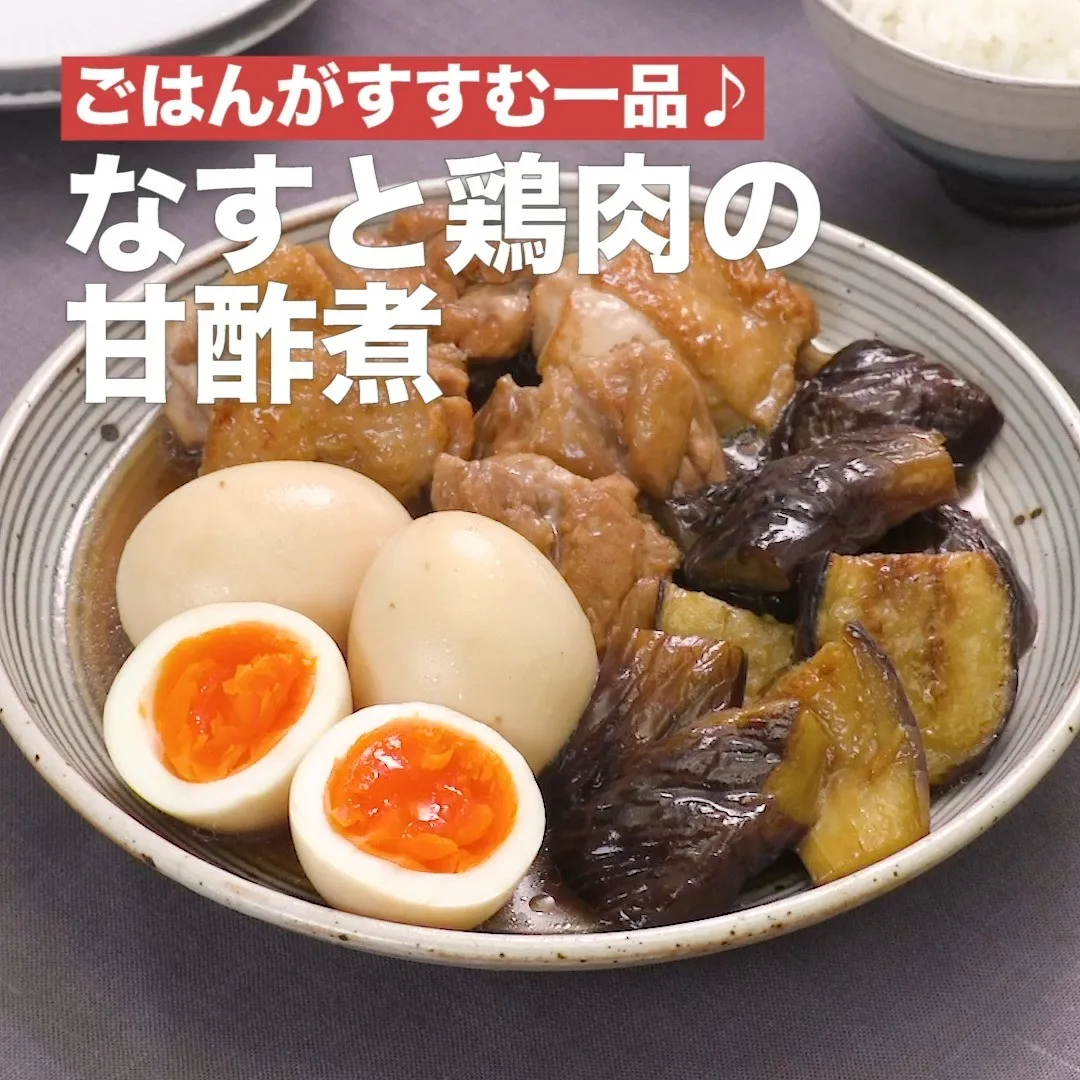 ⑥<ごはんがすすむ一品♪なすと鶏肉の甘酢煮>