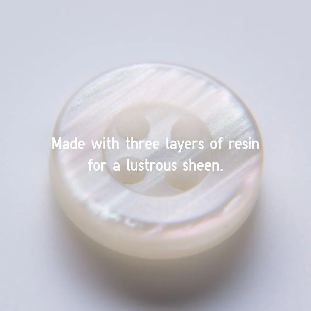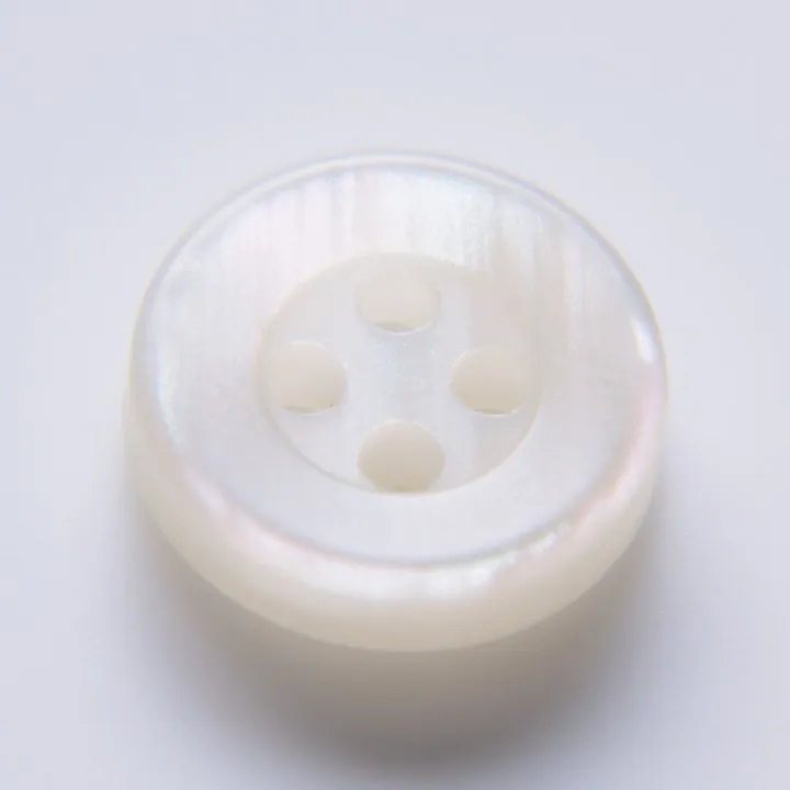 A single button can change a shirt’s appearance and comfort level. To reproduce the beautiful sheen of an authentic shell button while retaining strength, we stacked three layers of resin with a precisely calculated cut. Both sides of the buttons are shaved with rounded edges to make them easier to open and close.