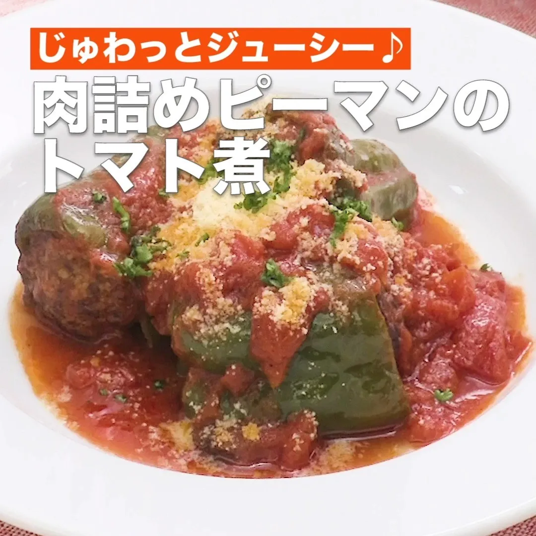⑤<じゅわっとジューシー♪肉詰めピーマンのトマト煮>