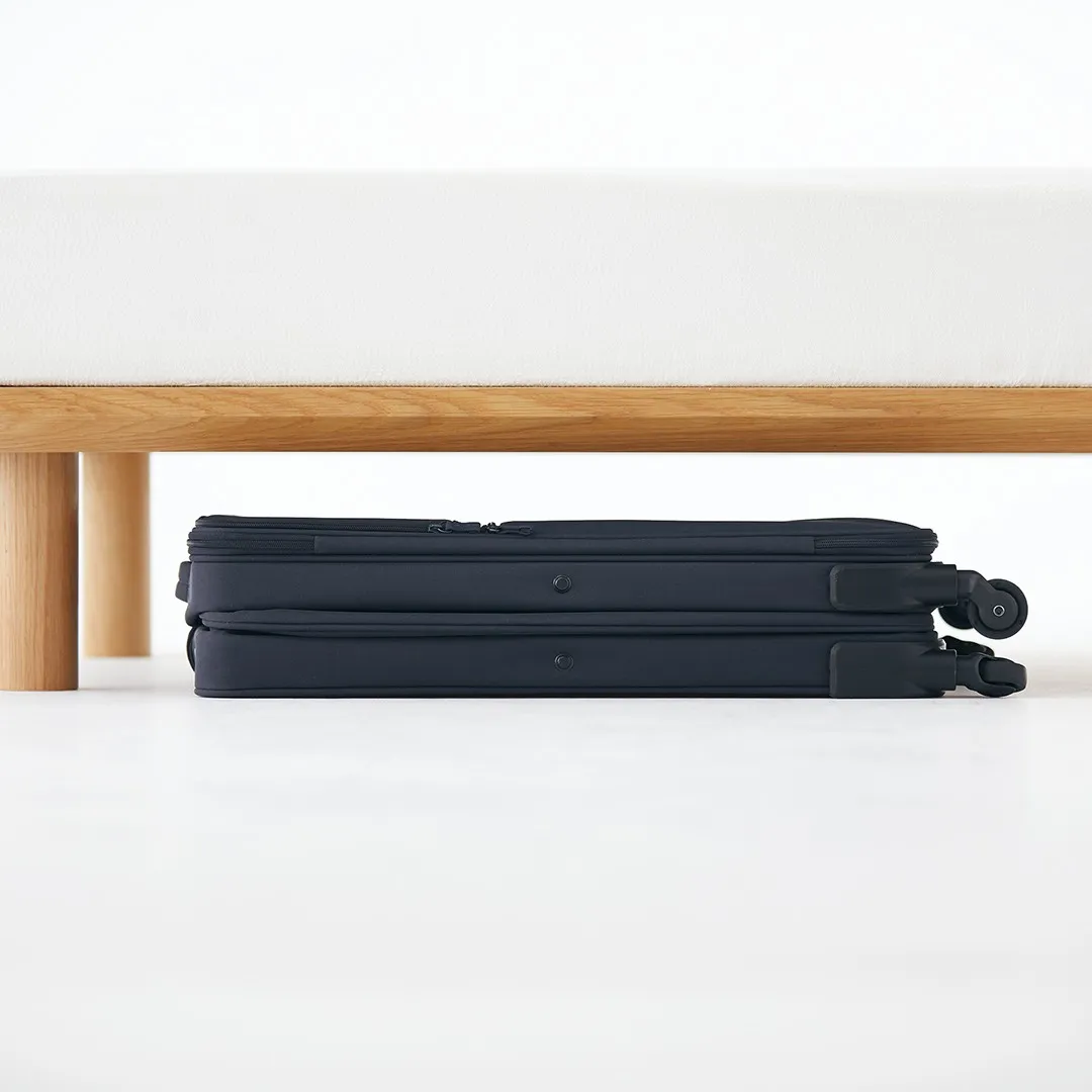 半分の幅にたたんでしまえる『ソフトキャリーケース』は、不要時はベッド下やクローゼットなどへ幅をとらず収納できます。