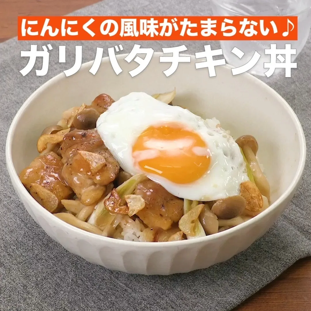 ⑤<にんにくの風味がたまらない♪ガリバタチキン丼>