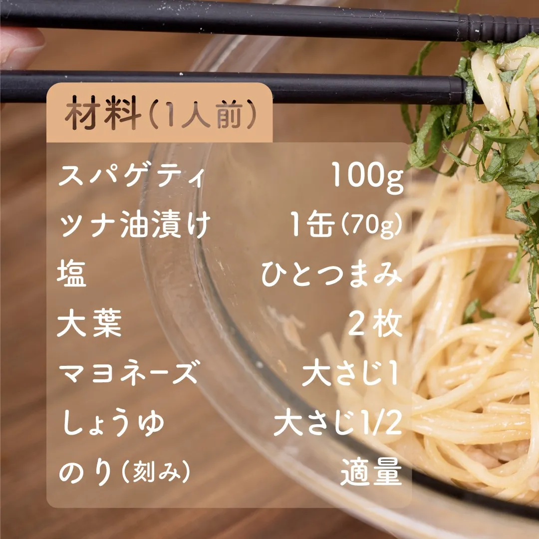 電子レンジで簡単に作れる、ツナと大葉の和風パスタのご紹介です!火を使わないので、お料理初心者の方でも簡単にお作りいただけます◎ツナ油漬けは油ごと和えることで、旨みとコクが増しますよ👏🏻とてもおいしいので、ぜひお試しくださいね😋