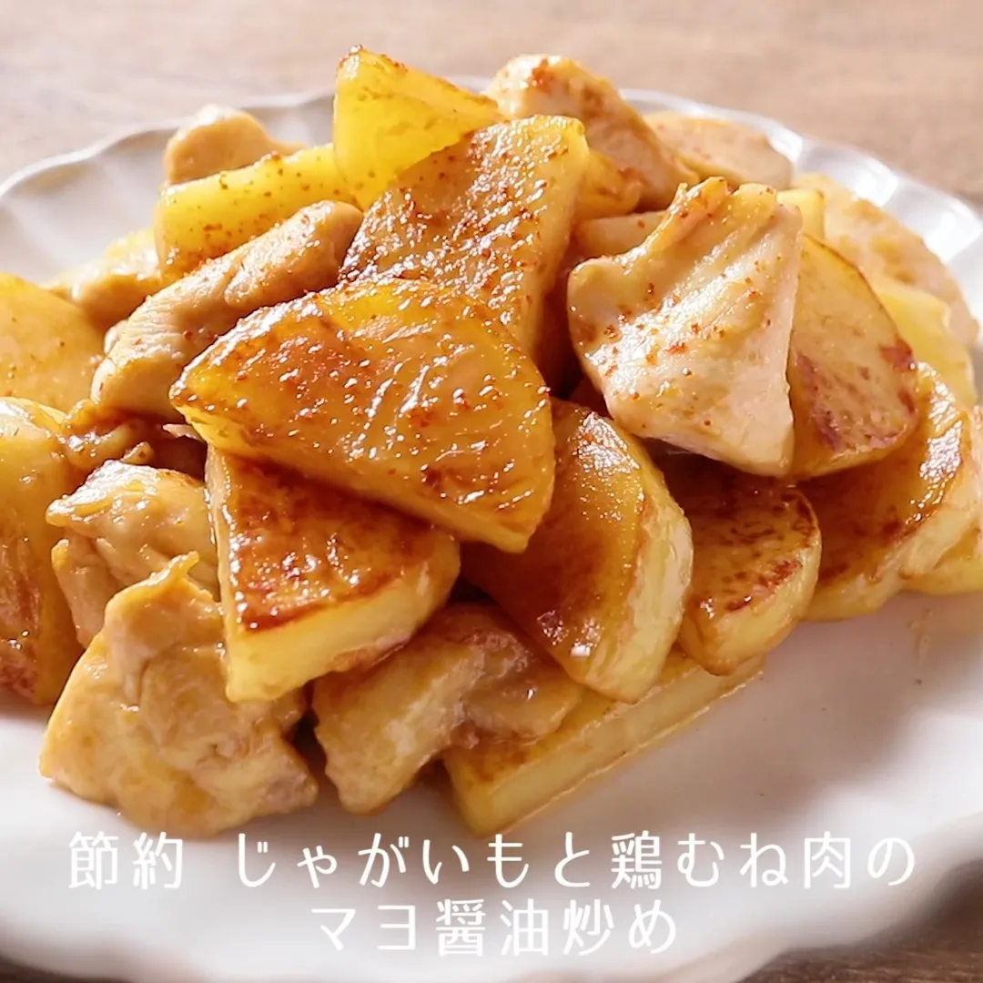④節約 じゃがいもと鶏むね肉のマヨ醤油炒め
