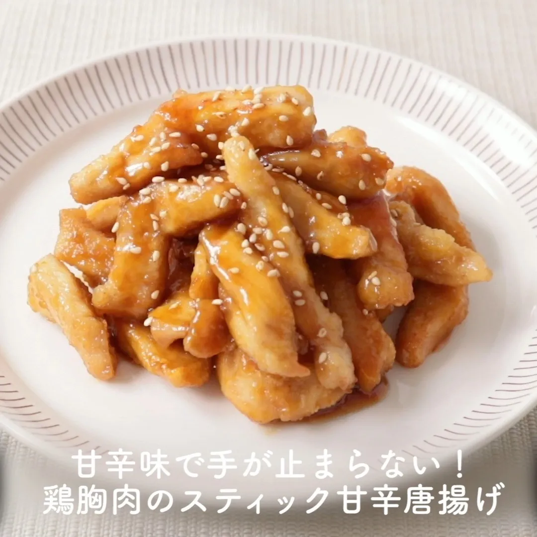②甘辛味で手が止まらない!鶏胸肉のスティック甘辛唐揚げ