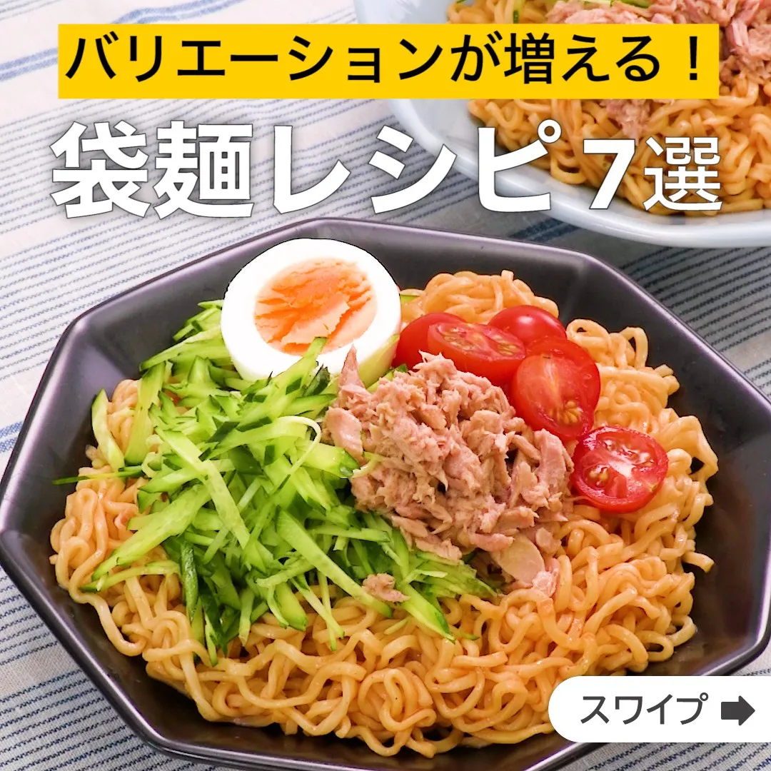 いつも食べている袋麺を韓国風のビビン麺にアレンジした一品をご紹介します。簡単仕上げで手間いらずなのにやみつきなおいしさ!具材は切ってのせるだけであっという間に仕上がるのでぜひお試しください♪