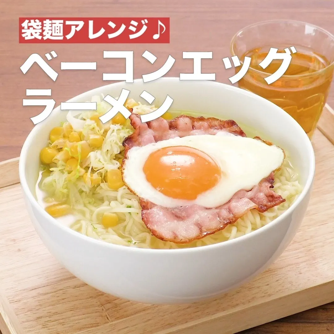 ⑤<袋麺アレンジ♪ベーコンエッグラーメン>