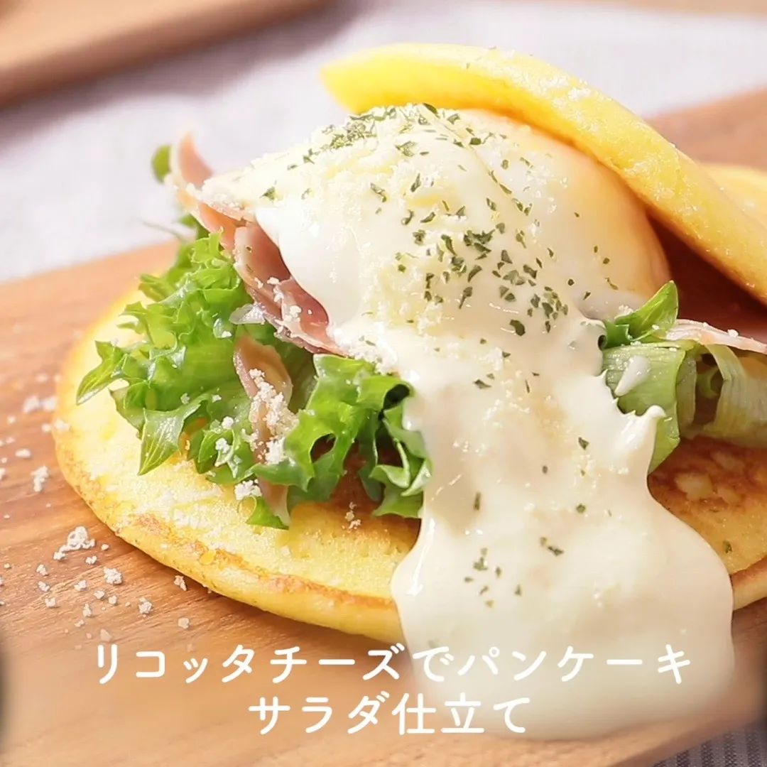 ②リコッタチーズでパンケーキ サラダ仕立て