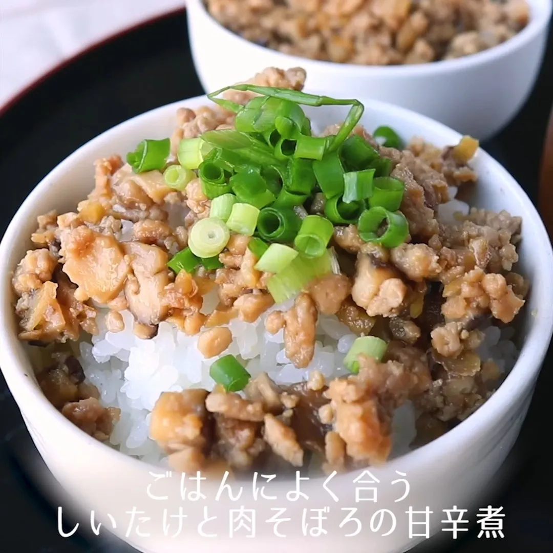 ③ごはんによく合う しいたけと肉そぼろの甘辛煮