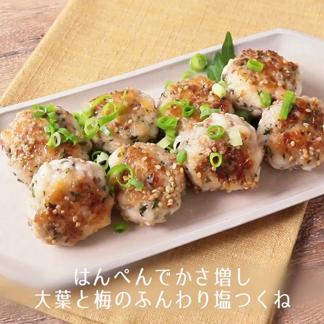 ⑤はんぺんでかさ増し 大葉と梅のふんわり塩つくね