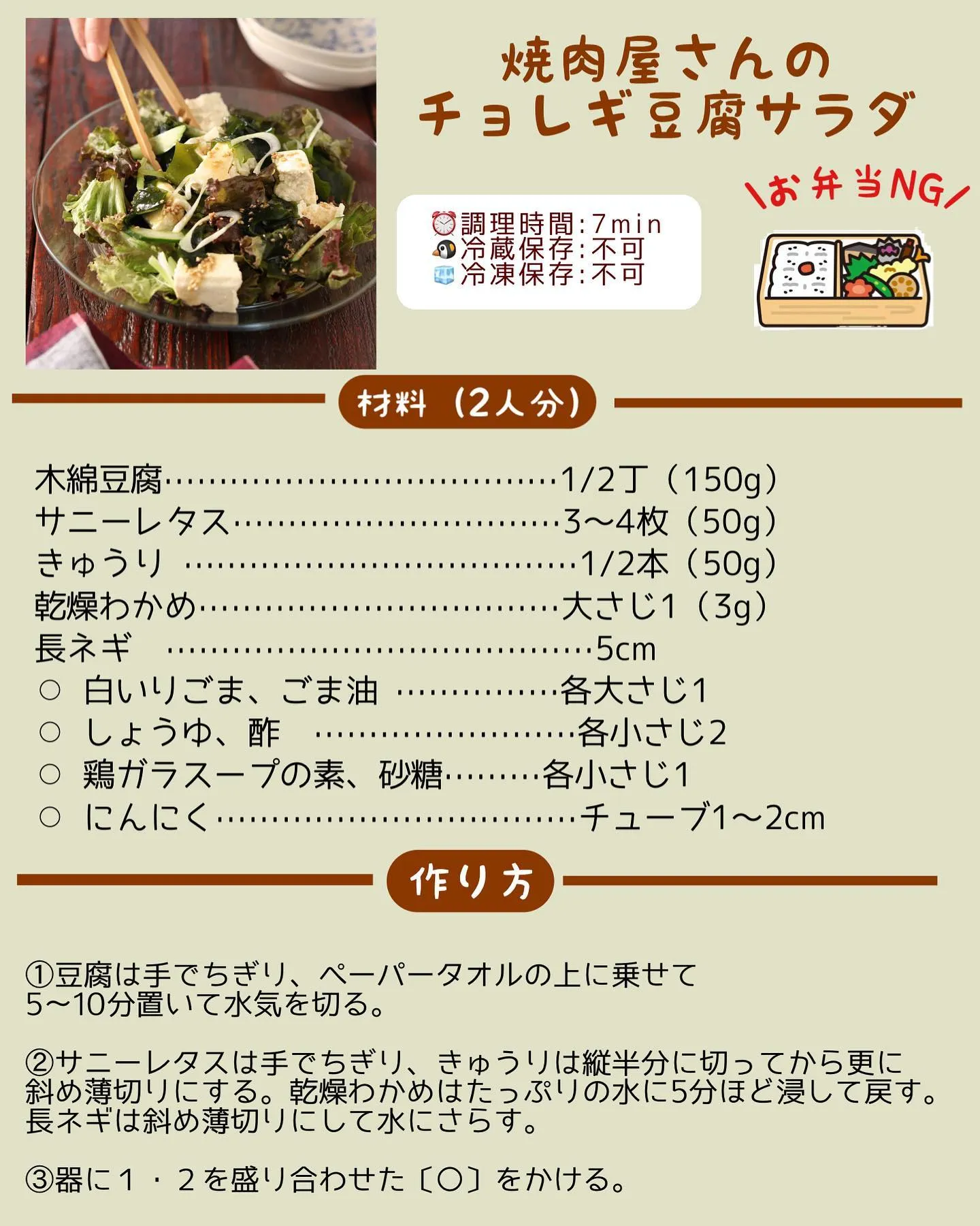 【第𝟷位】 #焼肉屋さんのチョレギ豆腐サラダ
