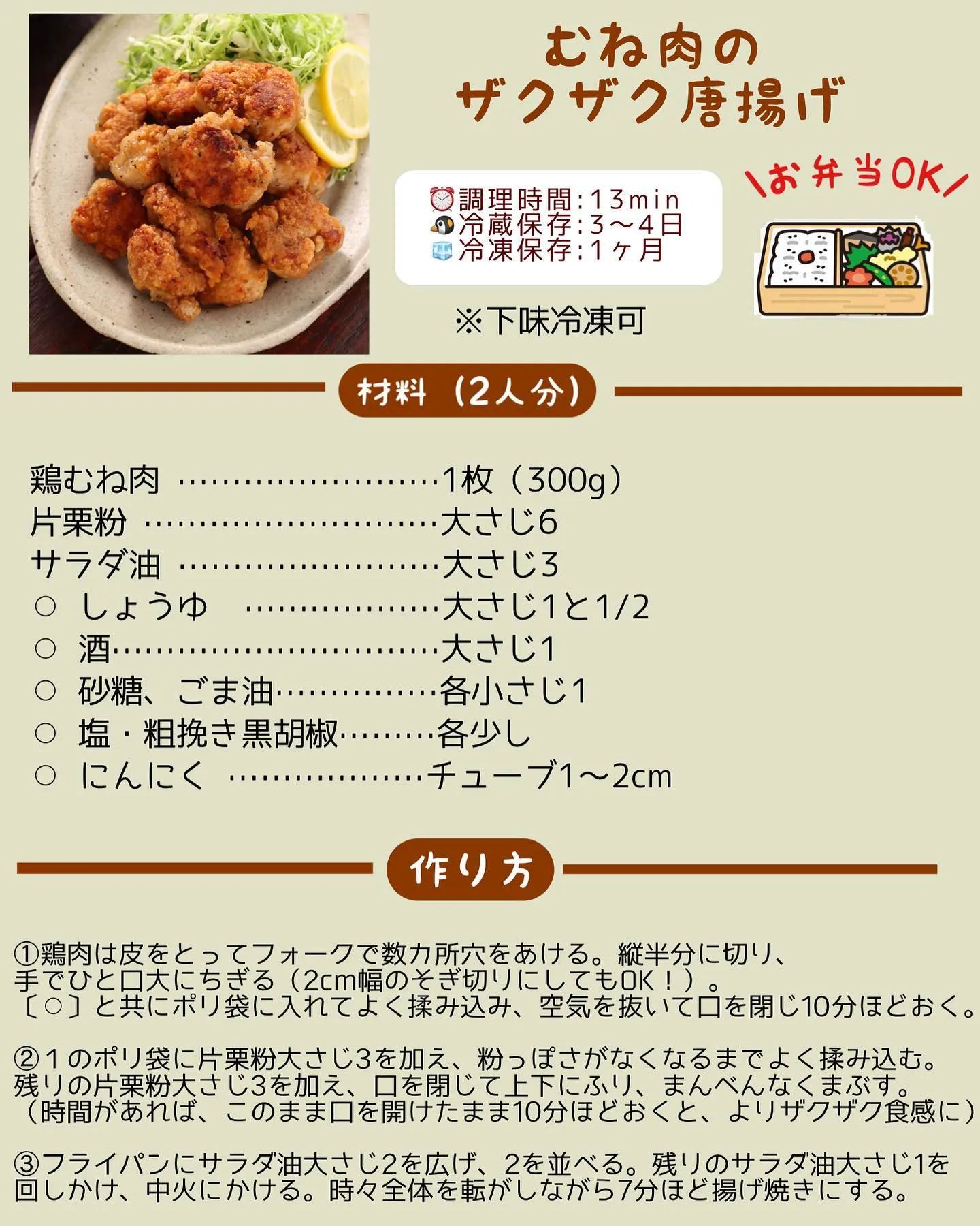 【第𝟺位】 #むね肉のザクザク唐揚げ