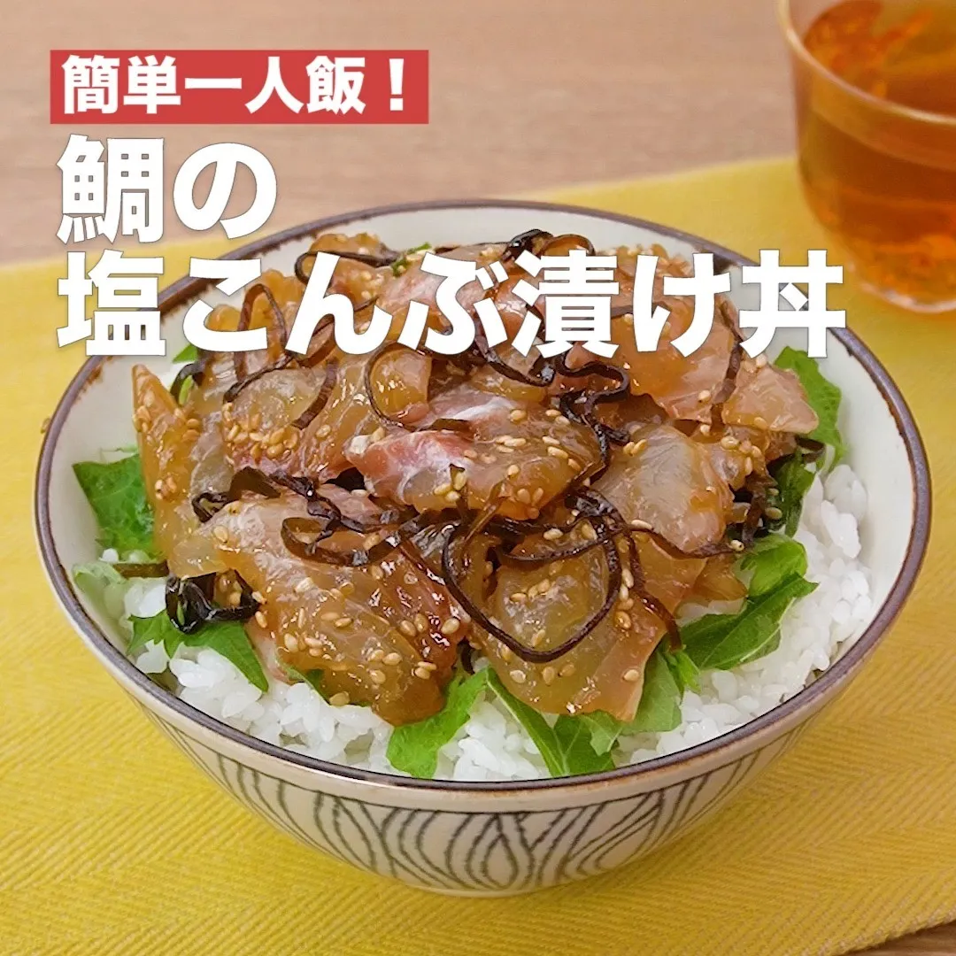 ①<簡単一人飯!鯛の塩こんぶ漬け丼>