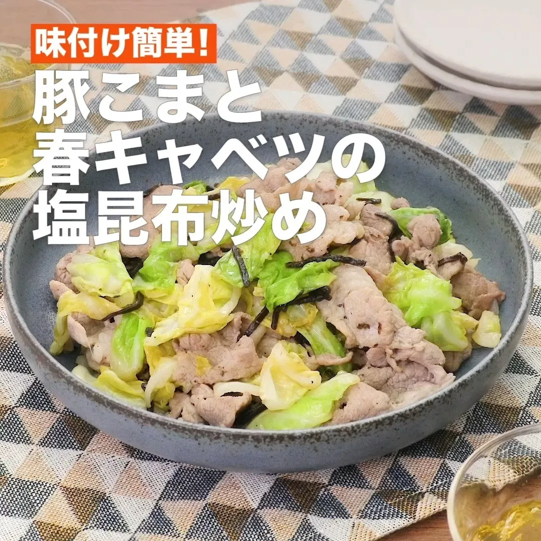 ④<味付け簡単!豚こまと春キャベツの塩昆布炒め>