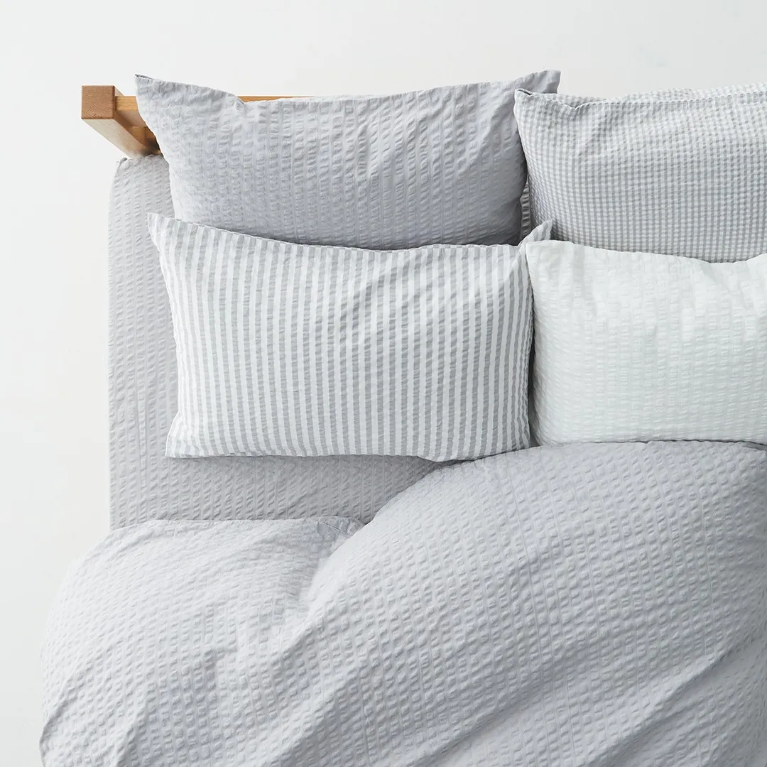 蒸し暑い日が増えてくる季節に、さらりとした肌触りの寝具を取り揃えました。暑い夜に向いているのは、リヨセルと麻を混紡した天然由来の接触冷感や、清涼感のある肌触りのサッカー織、やさしい肌触りの三重ガーゼなど。