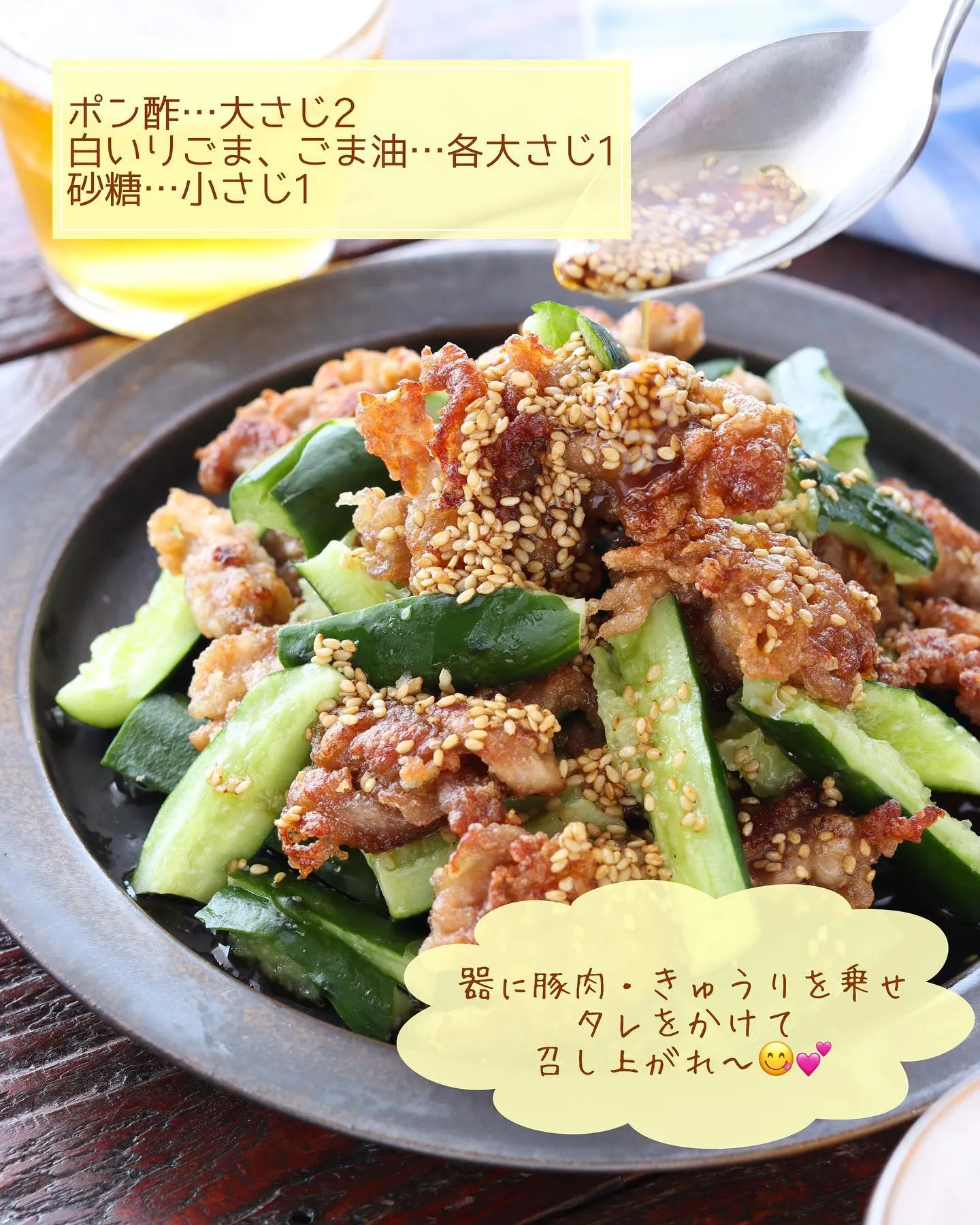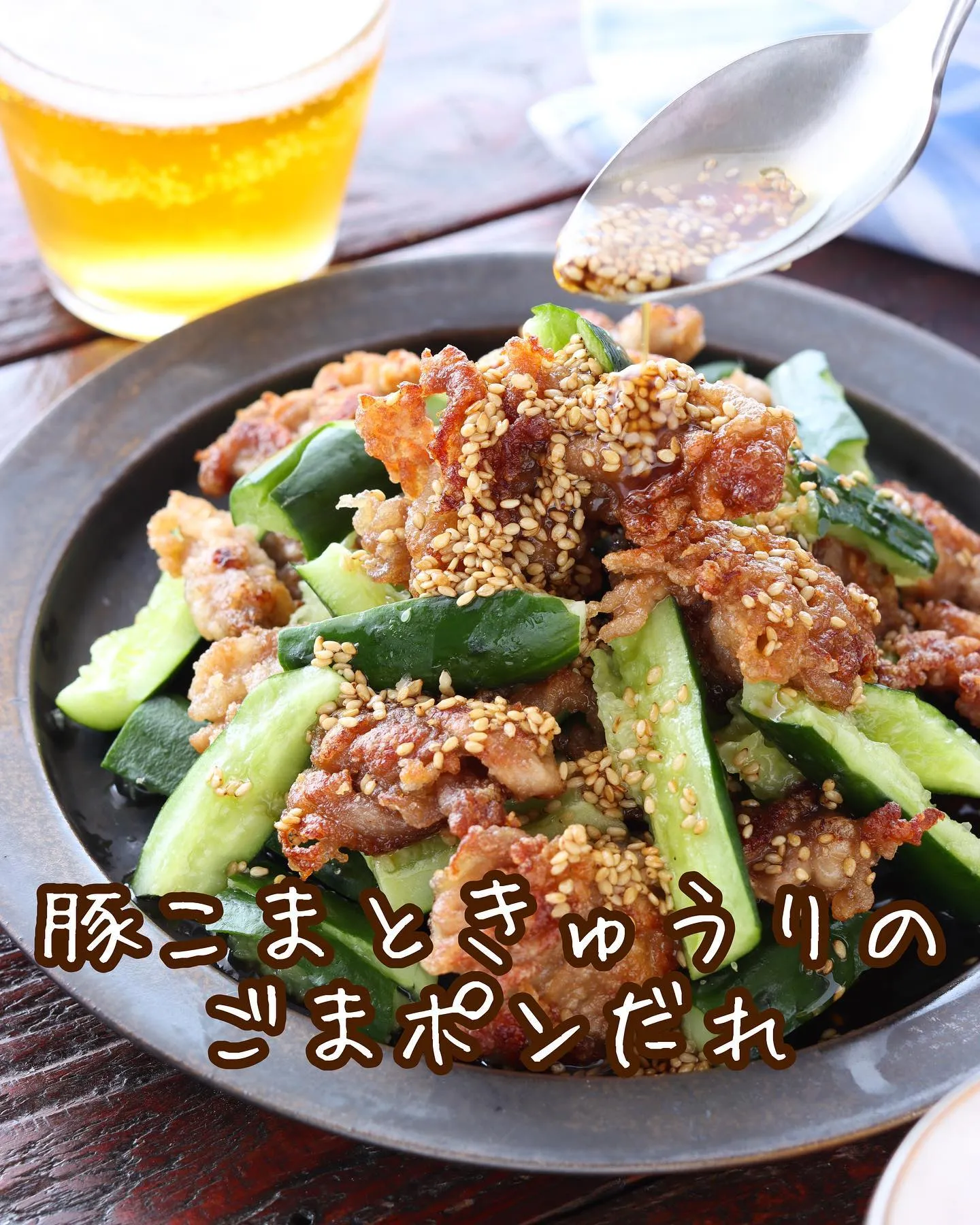 ▒ 豚こまときゅうりのごまポンだれ ▒