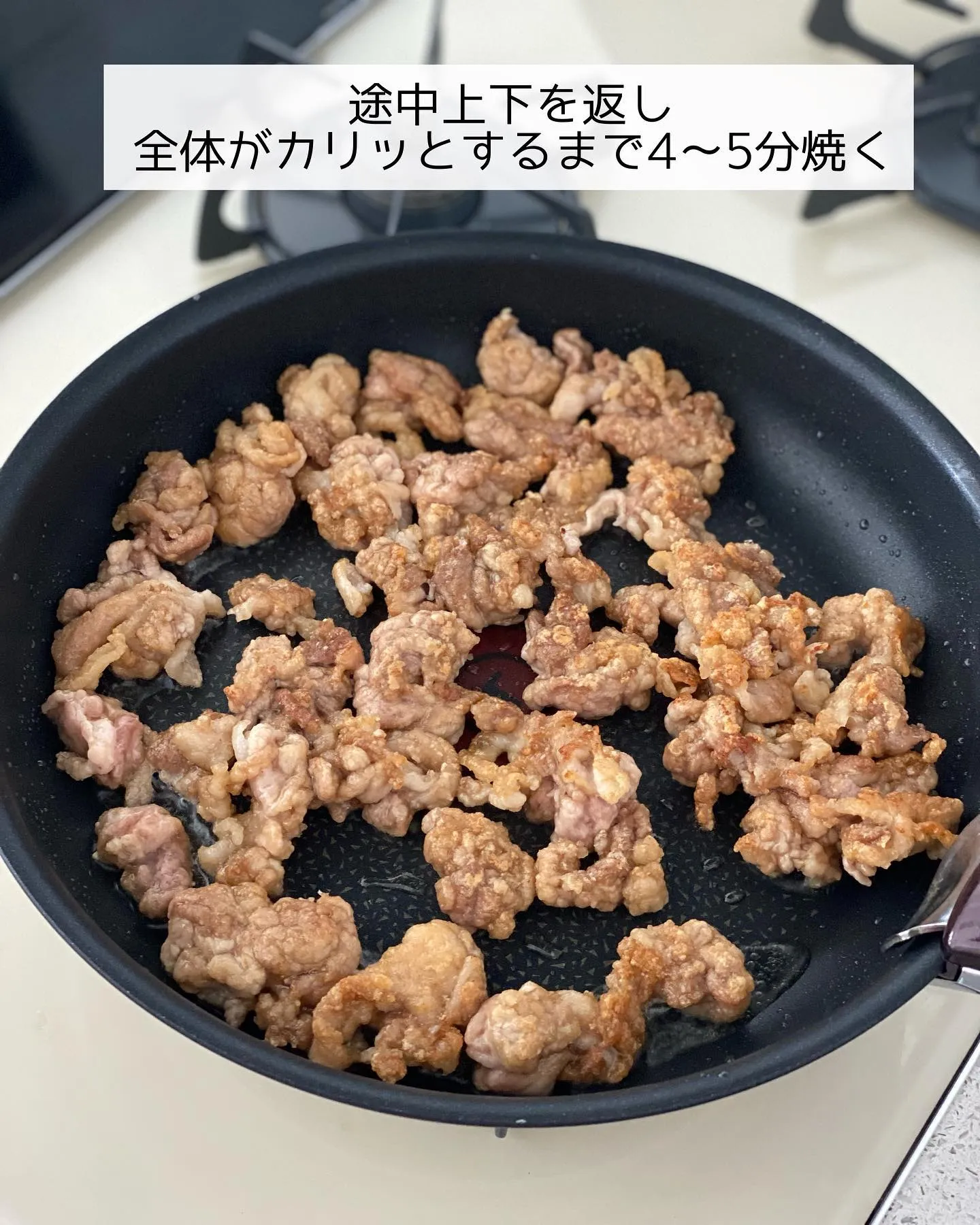 🔸豚こまを焼く時は、必要以上に触らないことがカリカリに仕上げるコツです