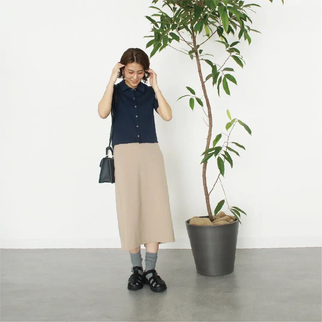 #カットソースリットナローミディスカート