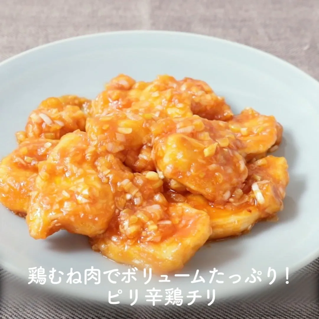 ②鶏むね肉でボリュームたっぷり!ピリ辛鶏チリ