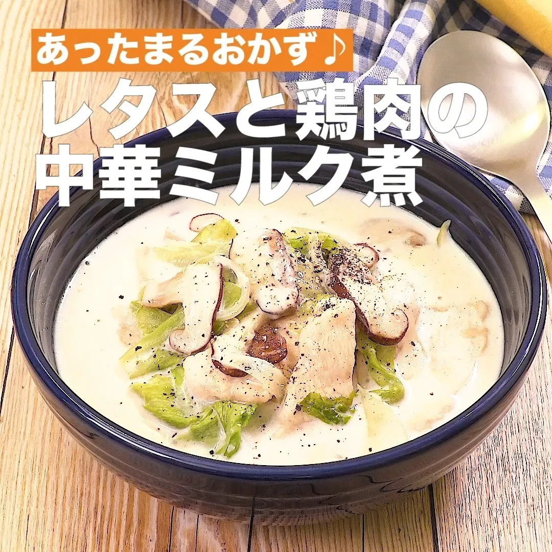⑥<あったまるおかず♪レタスと鶏肉の中華ミルク煮>