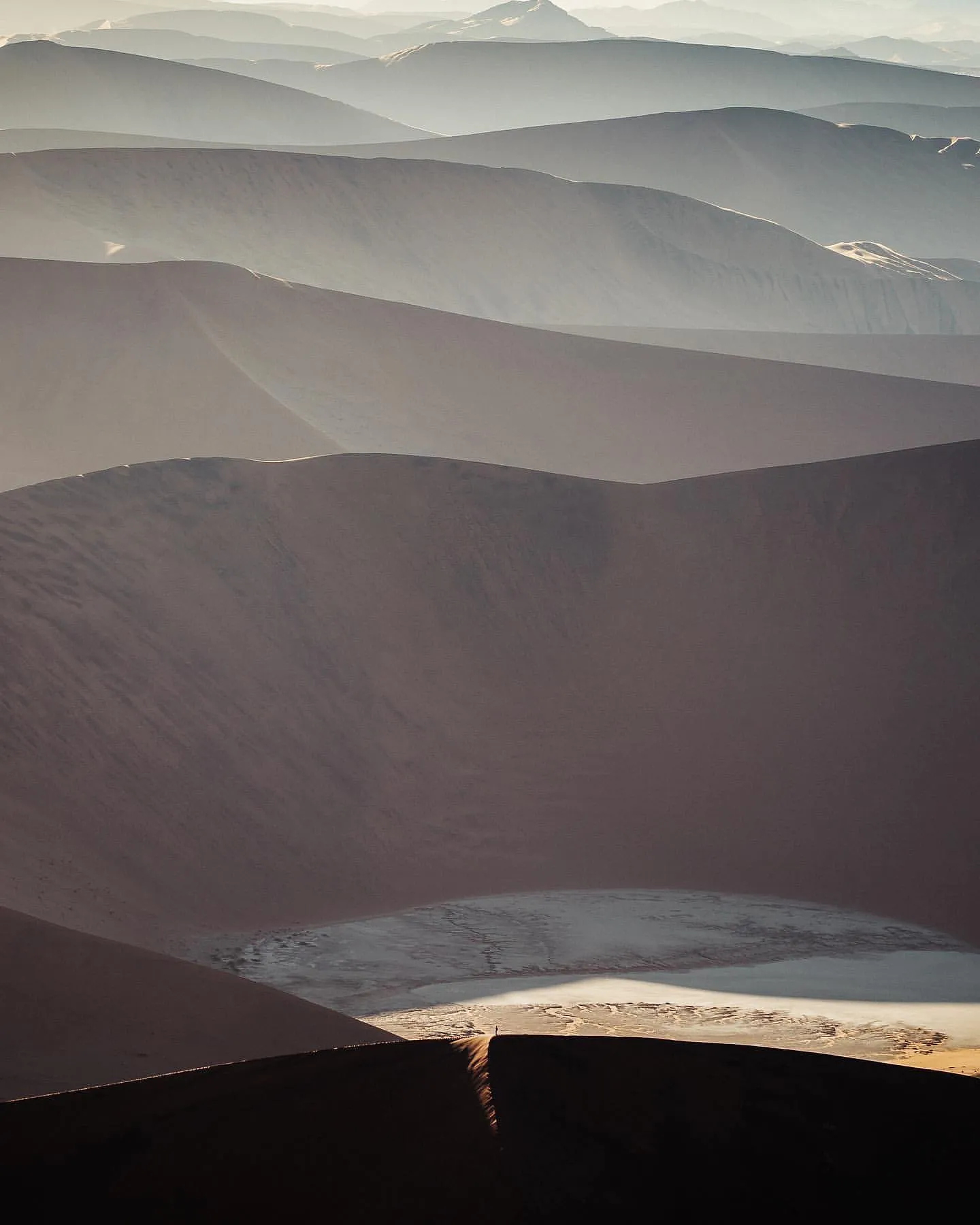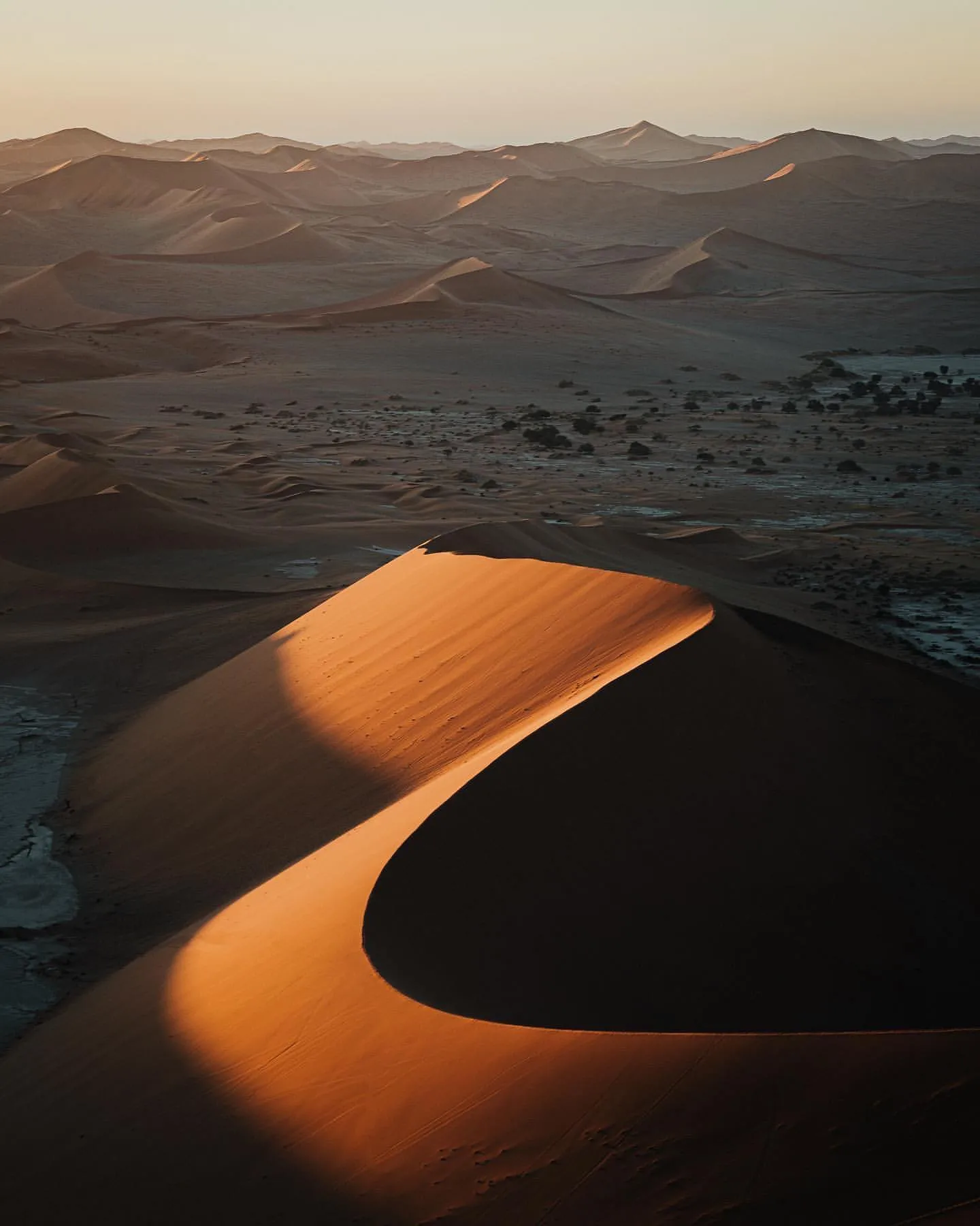 Mountains of sand casting the darkest of shadows as the sunsets over the Namibia desert 🌅