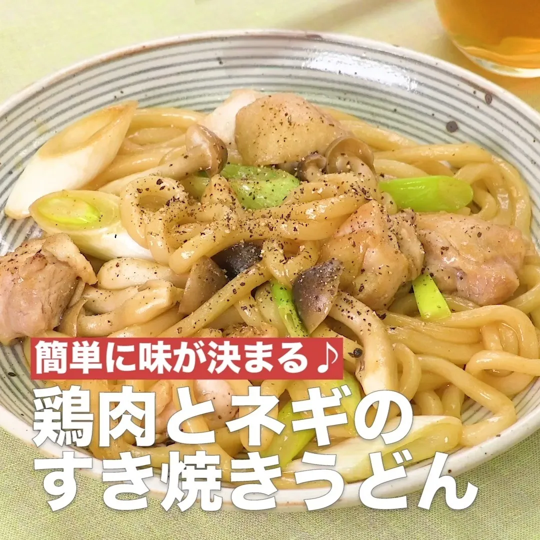⑤<簡単に味が決まる♪鶏肉とネギのすき焼きうどん>