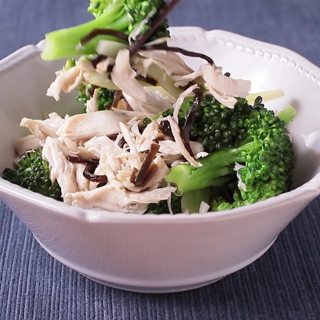 ④電子レンジで簡単 ブロッコリーとささみの塩昆布和え