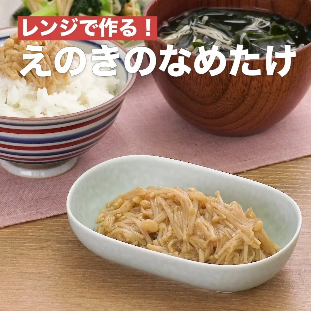 ごはんのお供にぴったり♪人気のなめたけがお家で簡単に作れます。ごはんにのせるだけでなく、野菜とあえて副菜に、お湯を注いで簡単汁物に、炊き込みご飯にとアレンジも楽しめます!