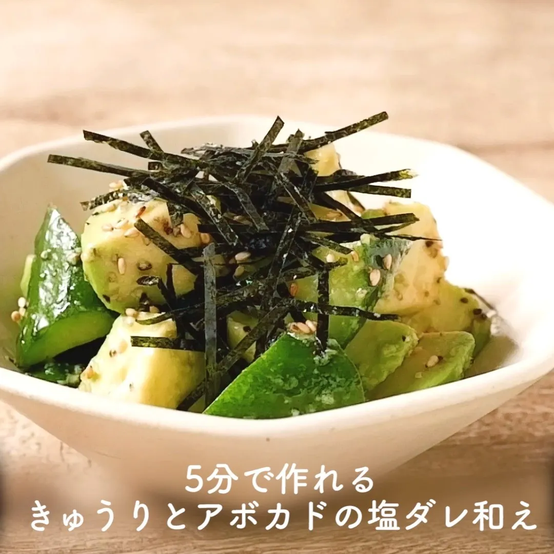 ④5分で作れる きゅうりとアボカドの塩ダレ和え