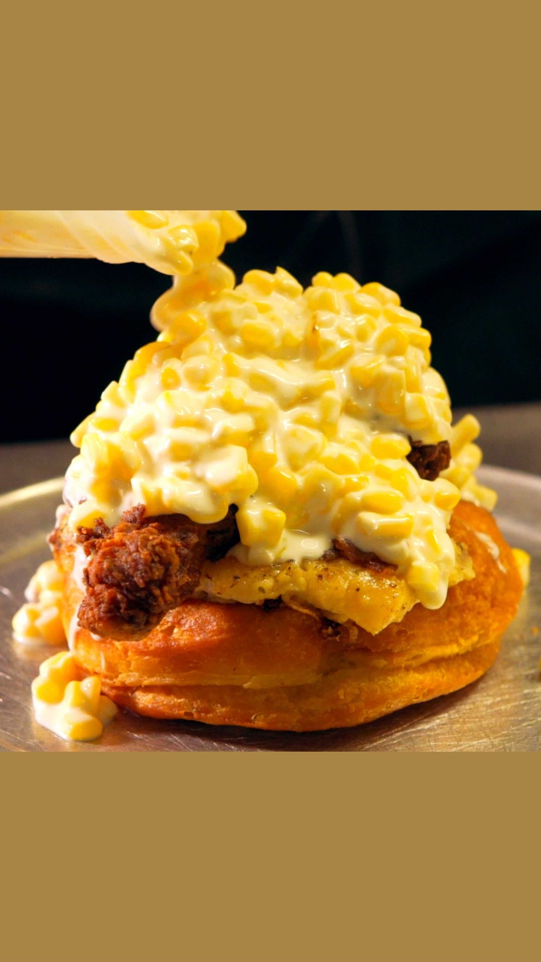 ドーナツにフライドチキンをドーンとのせた「チキン&ドーナツ」が甘じょっぱくて癖になると大人気✨