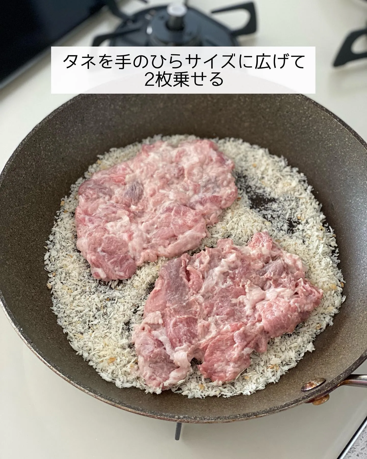 🔸豚肉を広げる際は、手に水をつけるとやりやすい♩