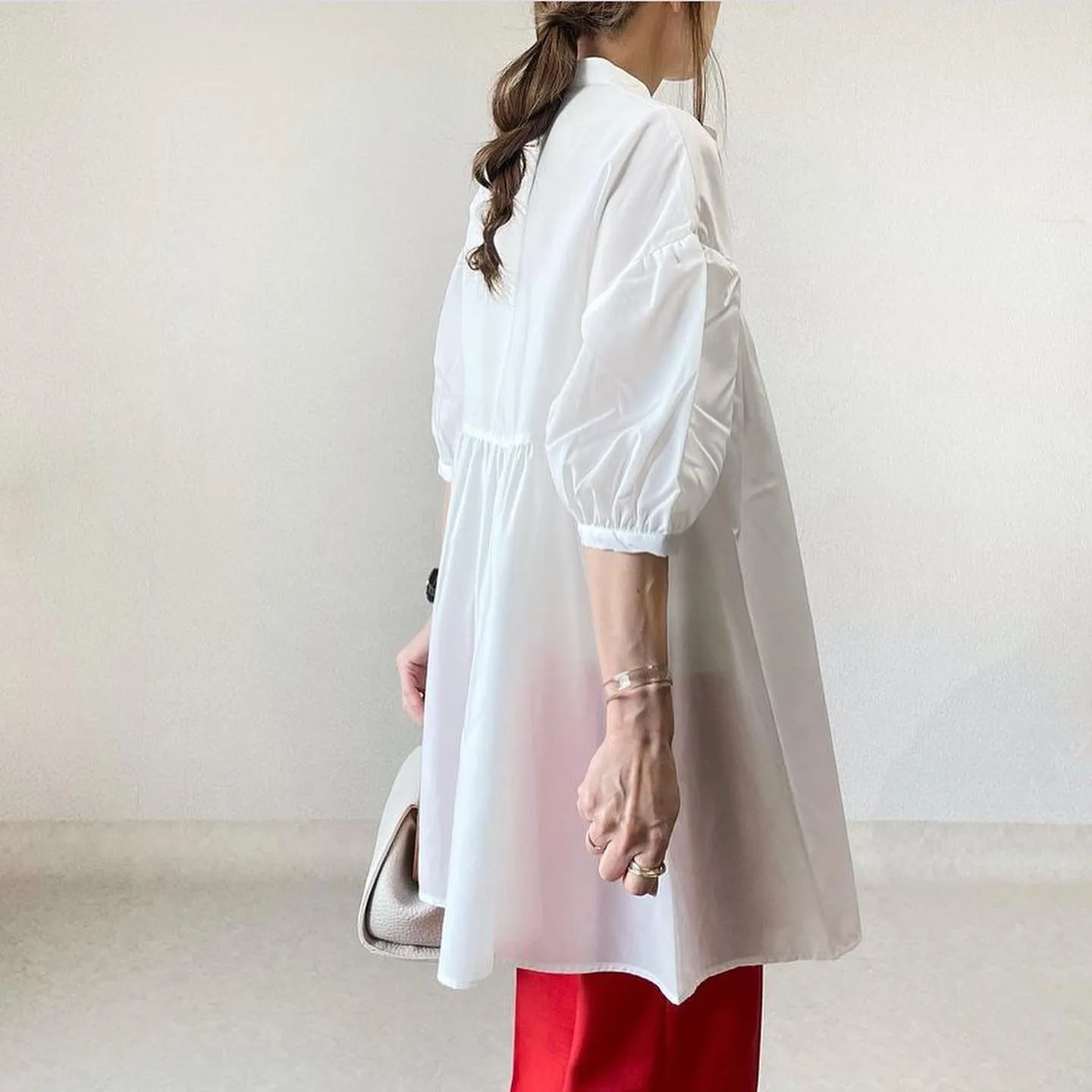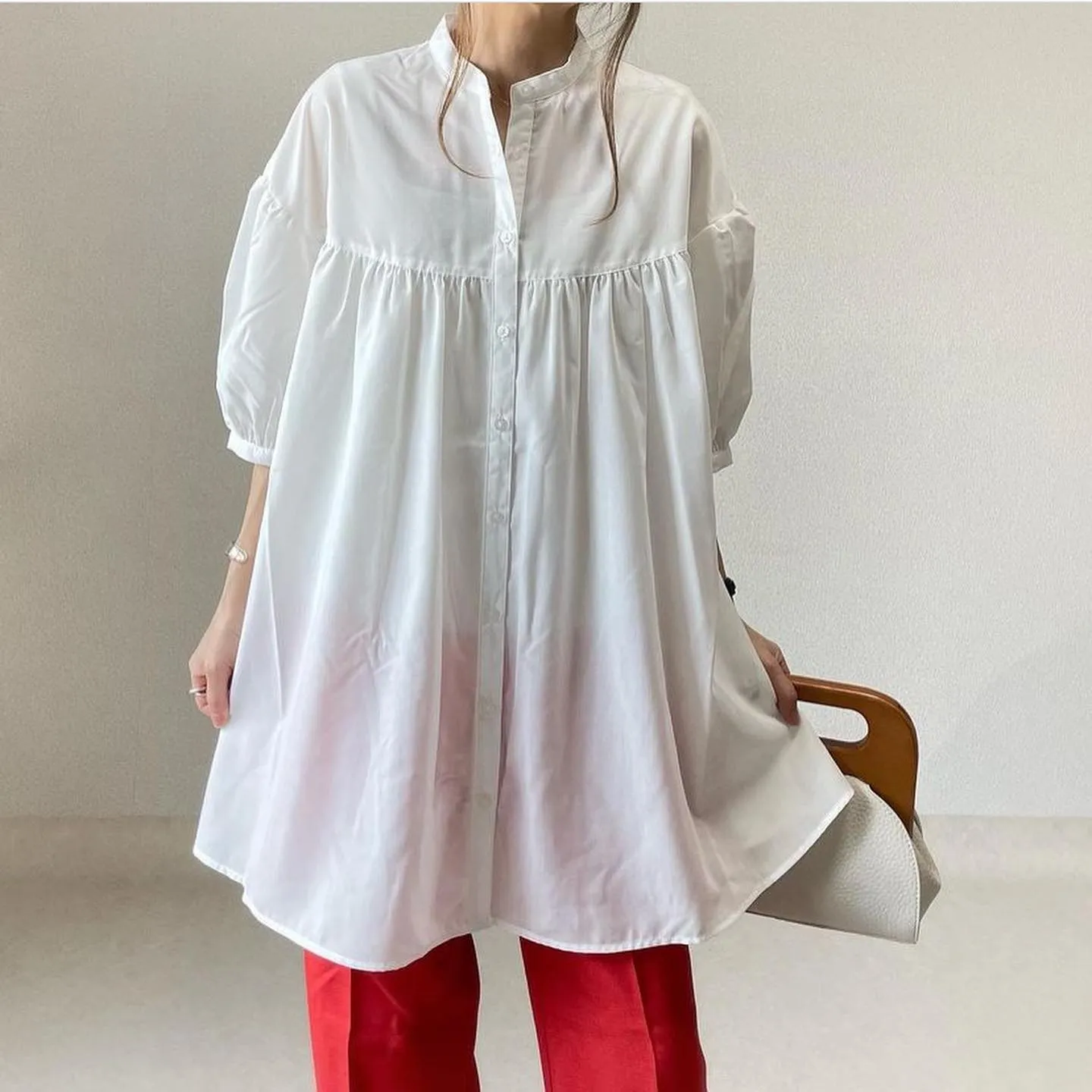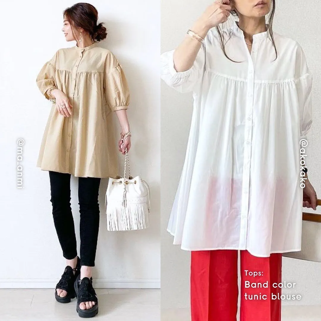 #バンドカラーチュニックブラウス