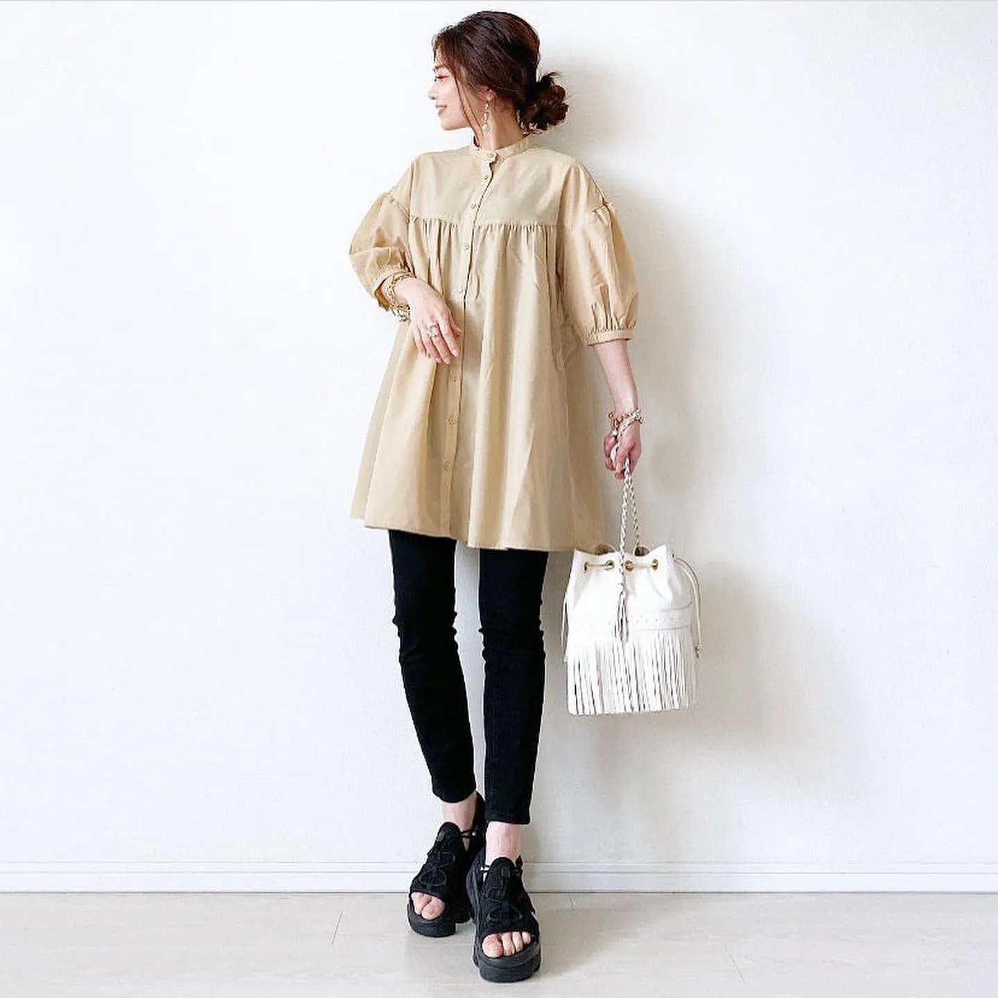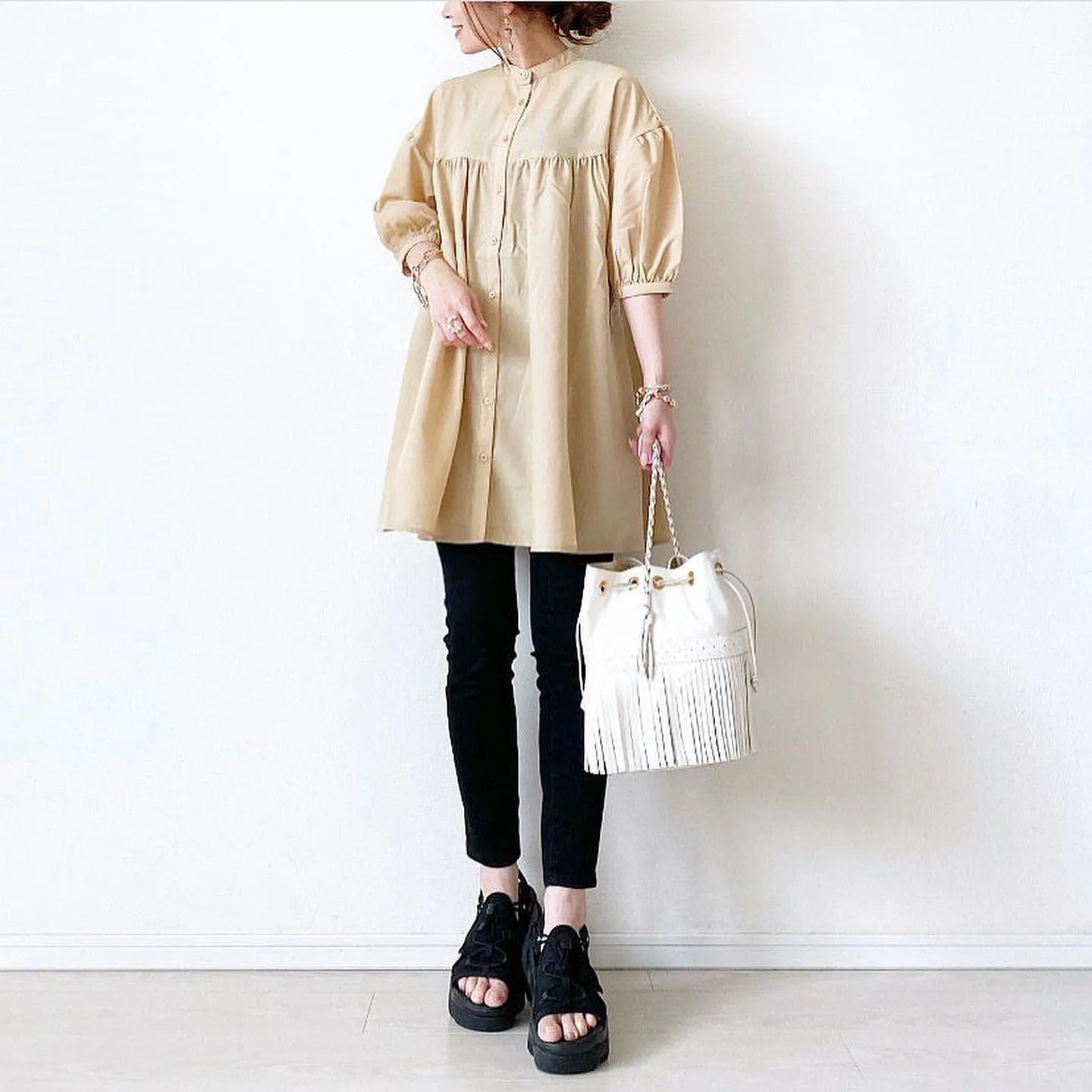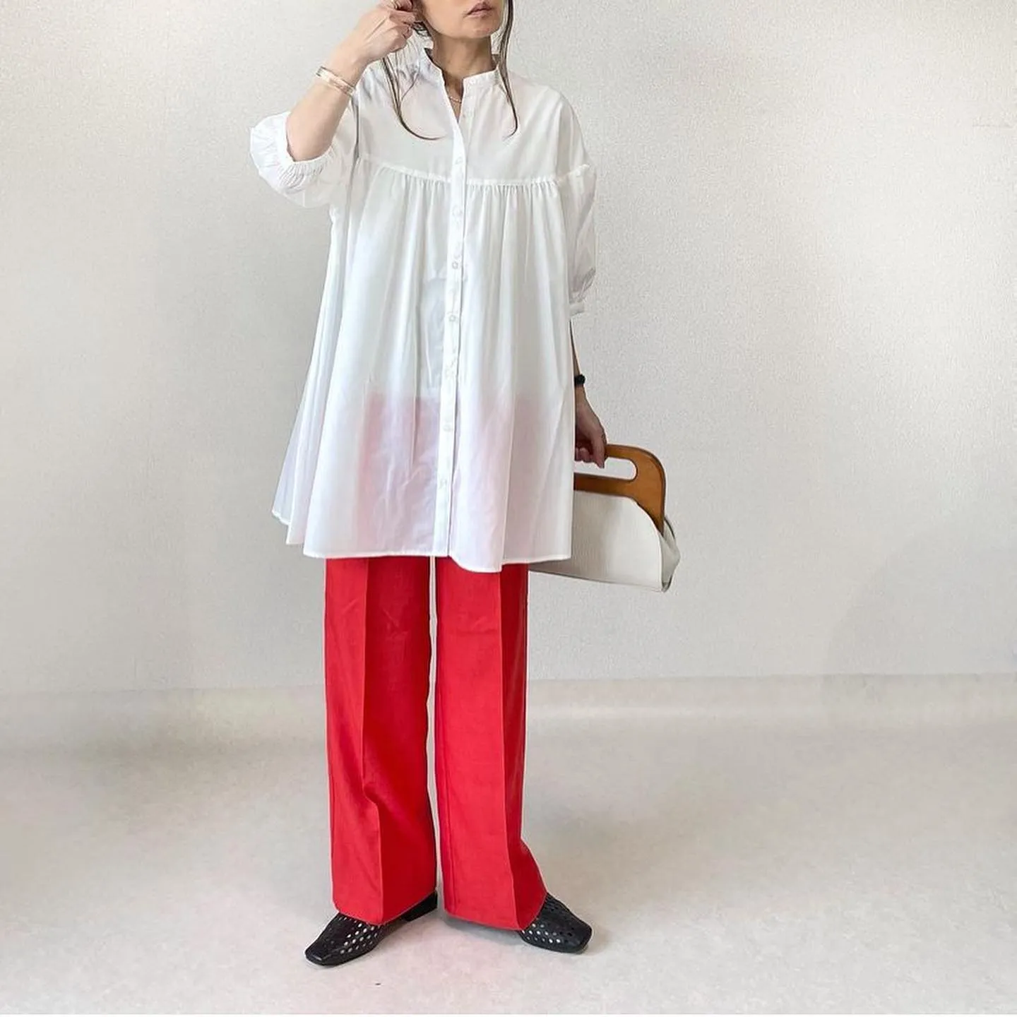 #バンドカラーチュニックブラウス