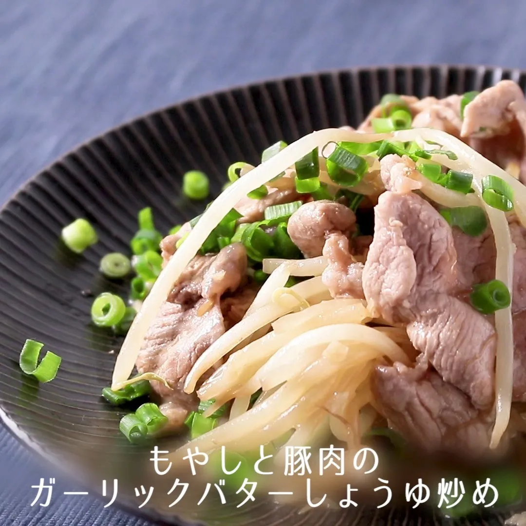 ⑤もやしと豚肉のガーリックバターしょうゆ炒め