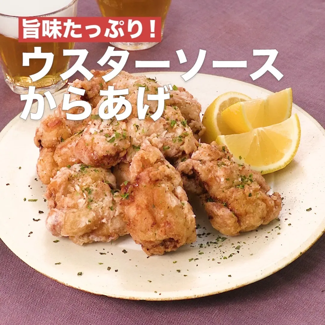 下味にウスターソースを使用し、ひと味違うからあげに仕上げました!仕上げに青のりをかけて、さらに風味豊かな味わいです。