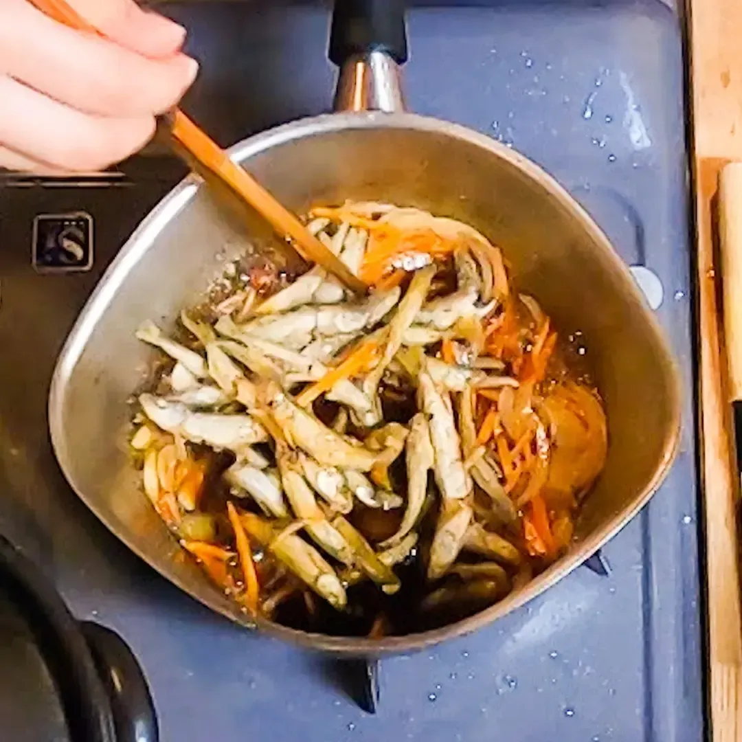 ⑦⑥に揚げたワカサギをタレに入れ絡めたら完成!