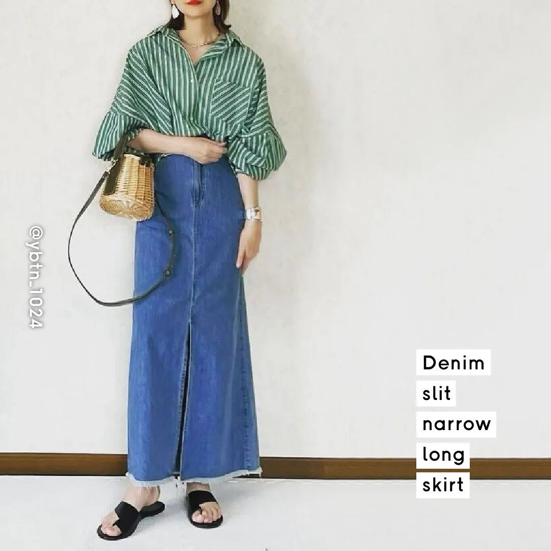 デニムスリットナローロングスカート(丈標準89~96cm)