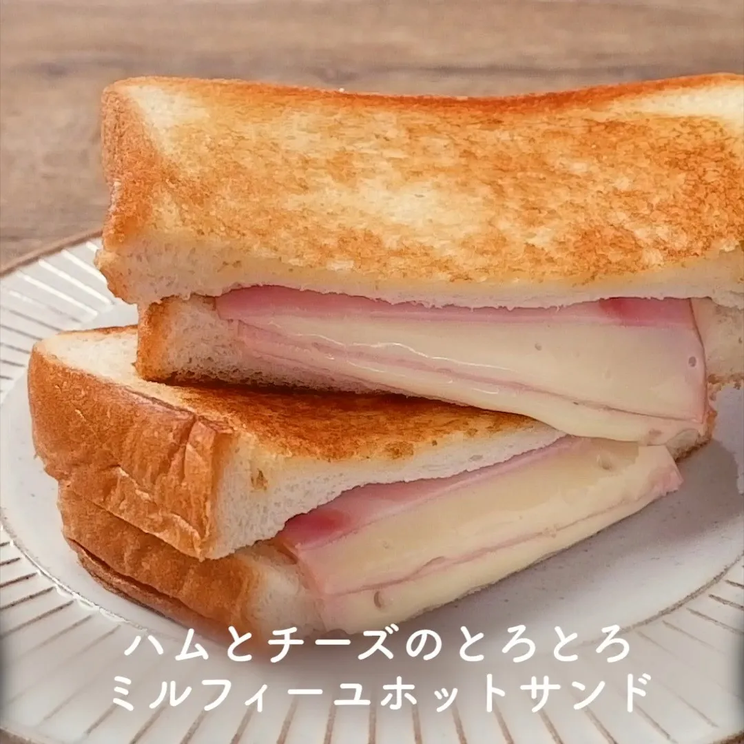 ③ハムとチーズのとろとろミルフィーユホットサンド