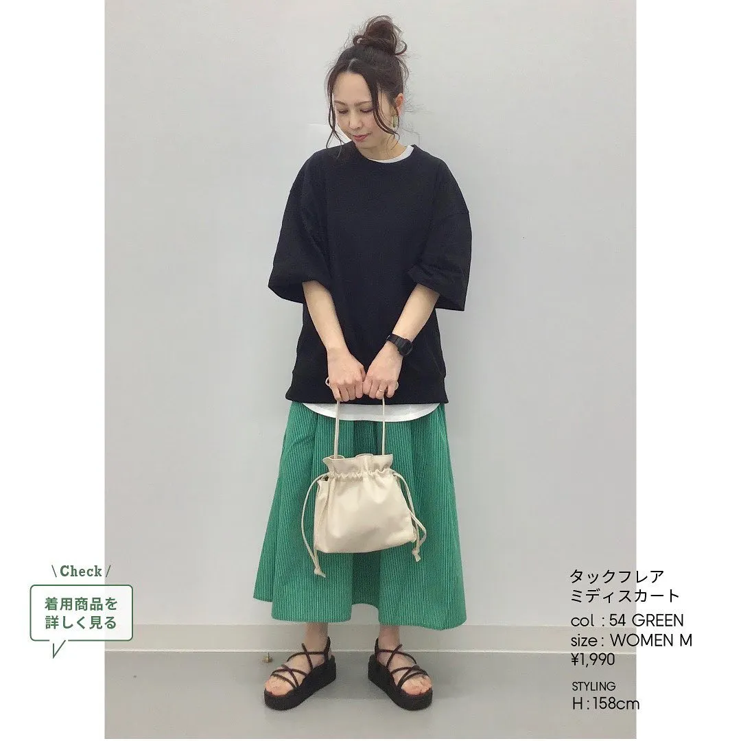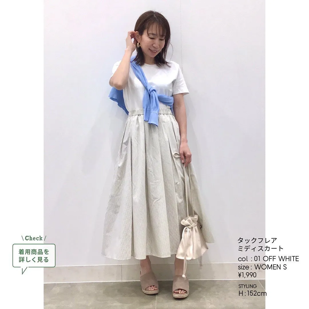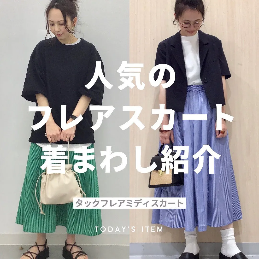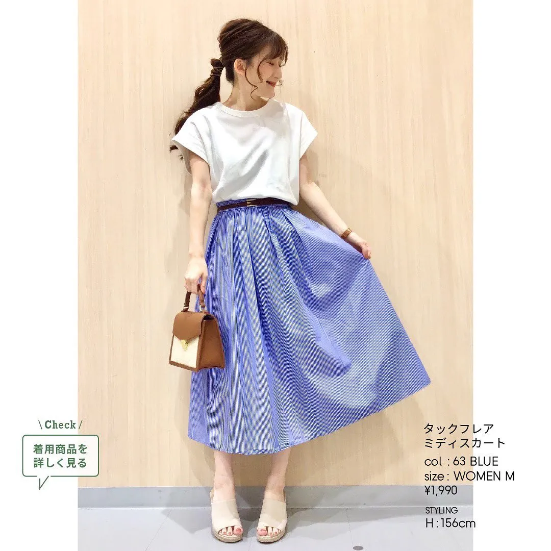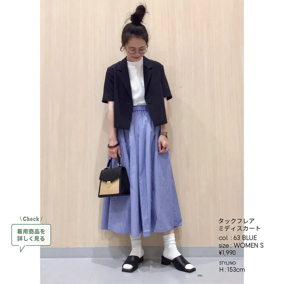 #GU #ジーユー #GUコーデ #gu_for_all #きれいめカジュアル #きれいめコーデ #高見えコーデ #大人GU #夏コーディネート #女性ファッション #今日のコーデ #カジュアルコーデ #GU今日のおしゃれさん #タックフレアミディスカート #スカートコーデ #GUSTAFF #カジュアルコーデ