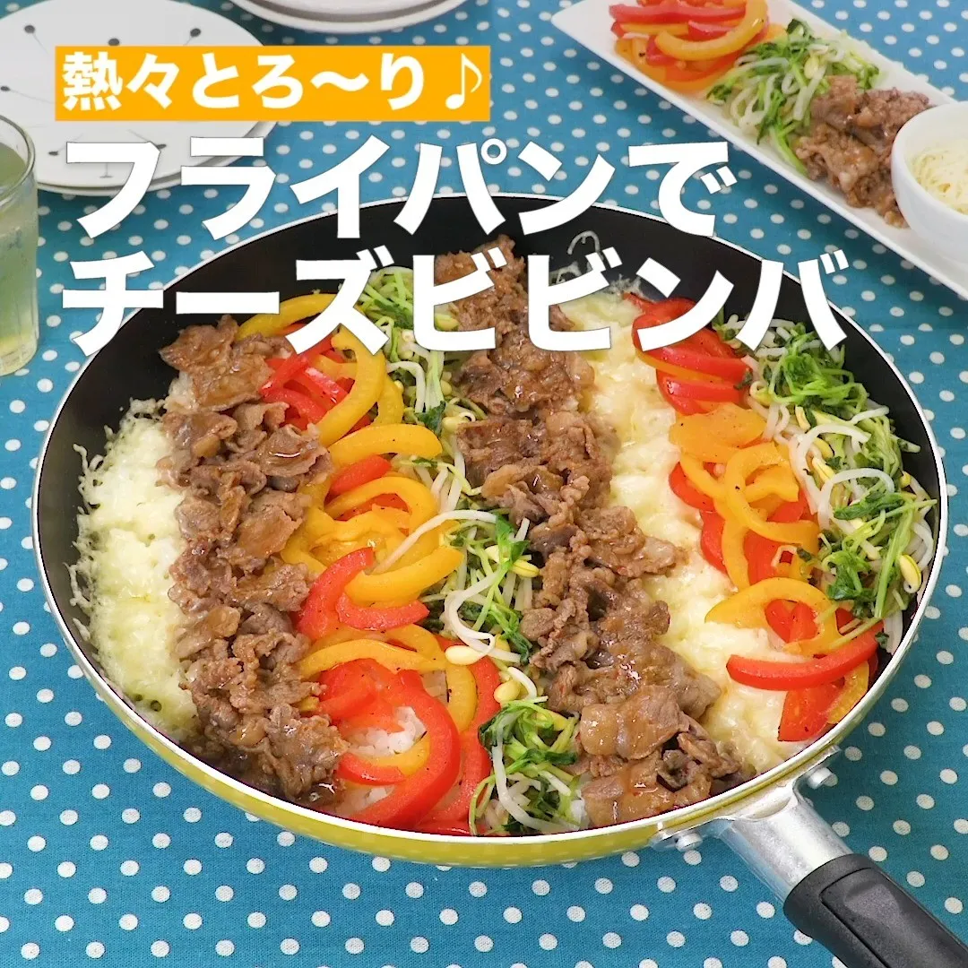 ④<熱々とろ〜り♪フライパンでチーズビビンバ>